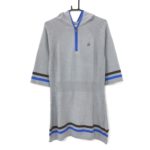 マンシングウェア フード付ニットワンピース グレー×ブルー