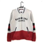 マークアンドロナ ニットジャケットブルゾン 白×ダークネイビー×レッド