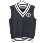 パーリーゲイツ チルデンニットベスト ダークネイビー×白 Vネック 透かし編み
