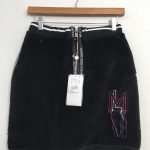 マークアンドロナ 中綿スカート 黒×グレー 異素材 ボア ハーフジップ ウエストゴム