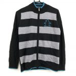 マンシングウェア ニットブルゾン 黒×グレー×ライトブルー ボーダー柄