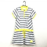 キスオンザグリーン 半袖ポロワンピース グレー×白×イエロー ボーダー