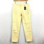 23区ゴルフ パンツ 白×イエロー ストライプ ロゴワッペン