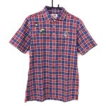 マスターバニー 半袖ポロシャツ レッドブルー チェック柄 総柄 ワッペン刺