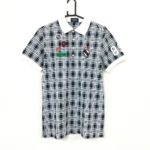 パーリーゲイツ 半袖ポロシャツ ダークネイビー×白 チェック柄