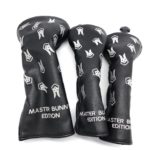 マスターバニー ヘッドカバー3点セット(1W×1、FW×2) 黒×グレー うさぎ刺繡