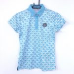 アンパスィ 半袖ポロシャツ ライトブルー×白 ロゴ総柄 ワッペン