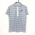 アンパスィ 半袖ポロシャツ 白×ダークネイビー ラケット総柄 ワッペン