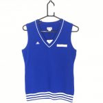 アディダス ニットベスト ブルー×白 Vネック レディース