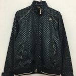 アディダス ブルゾン 黒×ダークグリーン ブロック柄 総柄 ダブルジップ 裏起毛