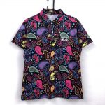 ダンスウィズドラゴン 半袖ポロシャツ 黒×マルチ ペイズリー柄 花柄