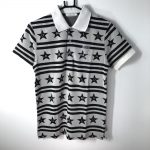 マークアンドロナ 半袖ポロシャツ ライトグレー黒 ボーダー 星柄 スカル ラインストーン