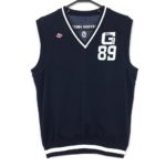 パーリーゲイツリバーシブルニットベストダークネイビー×白ナイロン