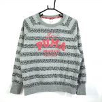 プーマ トレーナー 杢ライトグレー×ピンク ドットボーダー フロッキーロゴ 裏起毛