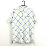 タイトリスト 半袖ポロシャツ 白×ブルー チェック柄 ボタンダウン ロゴ刺繍