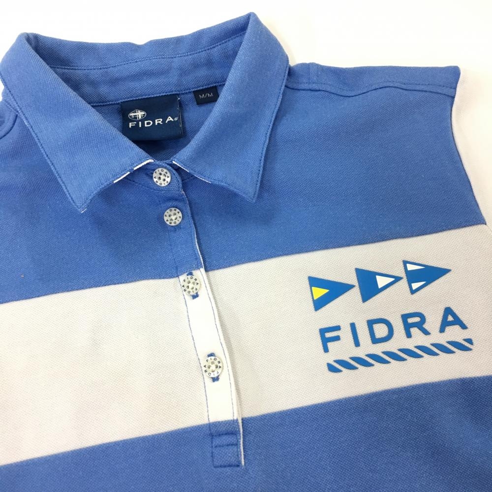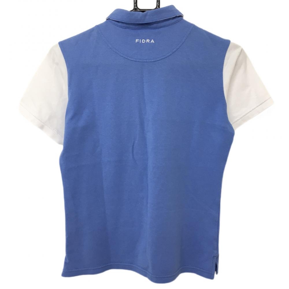 【美品】フィドラ 半袖ポロシャツ ライトブルー×白 襟裏ロゴ レディース M/M ゴルフウェア FIDRA