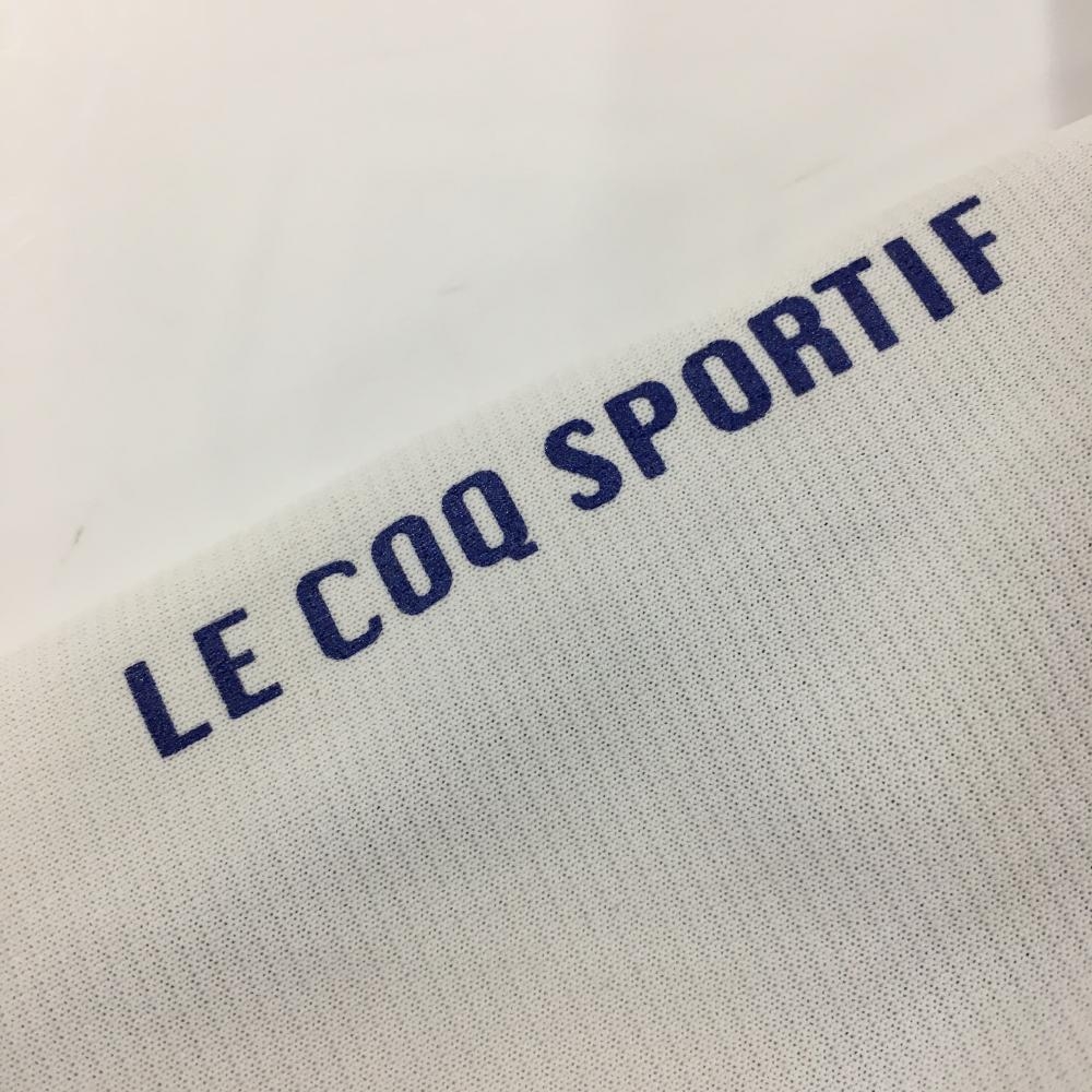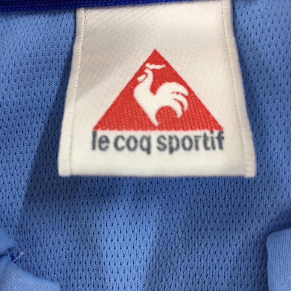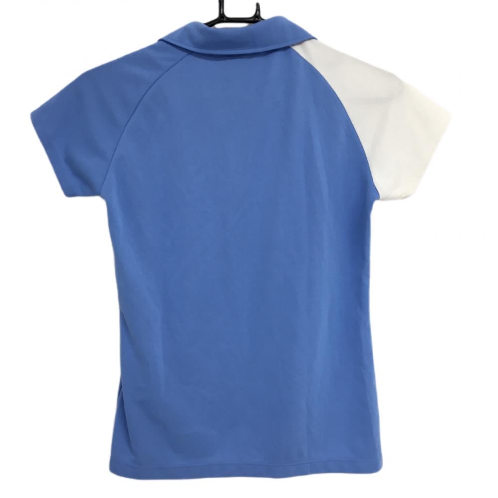 【超美品】ルコック 半袖スキッパーシャツ ライトブルー×白 ロゴ刺しゅう レディース M ゴルフウェア le coq sportif