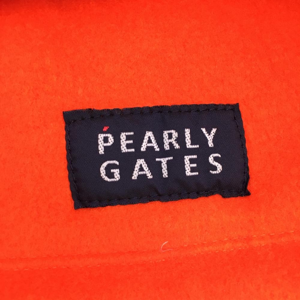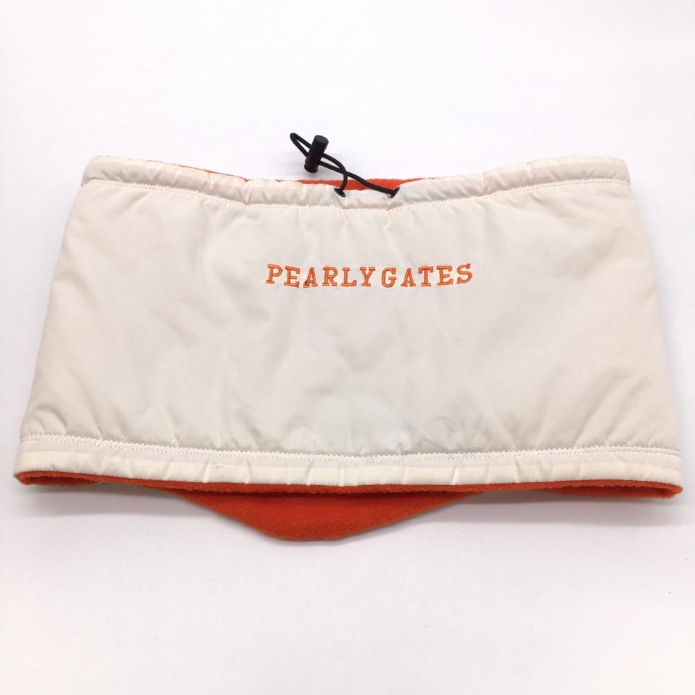 【美品】パーリーゲイツ ネックウォーマー アイボリー×オレンジ 裏起毛 ドローコード FR ゴルフウェア PEARLY GATES