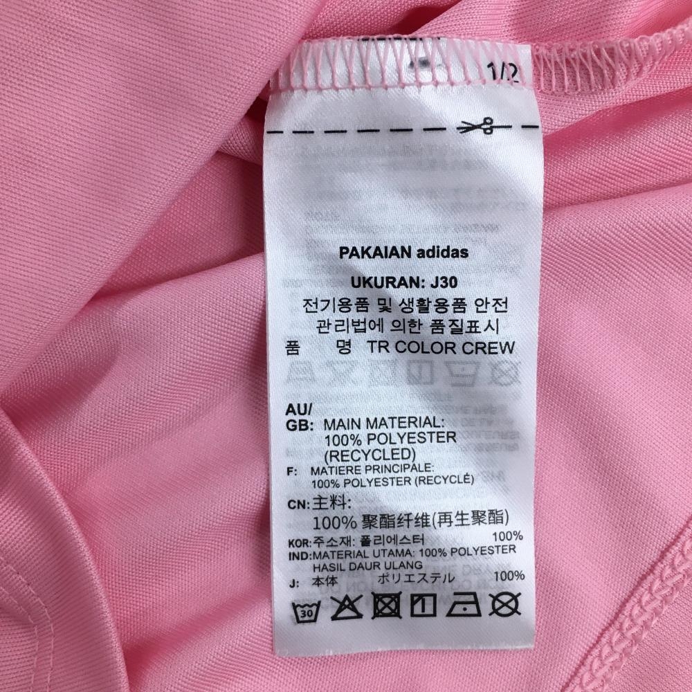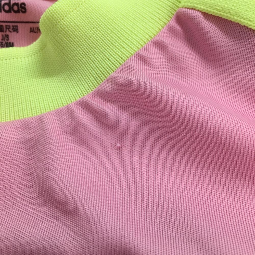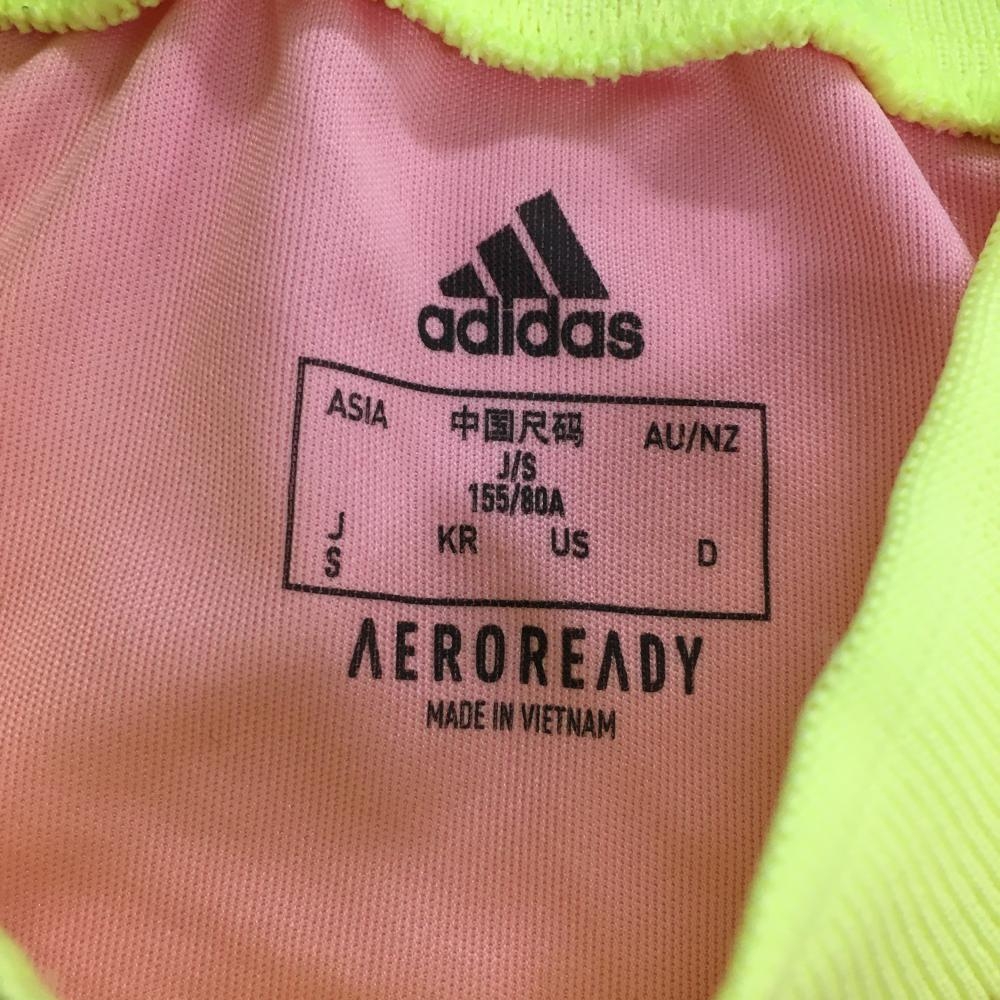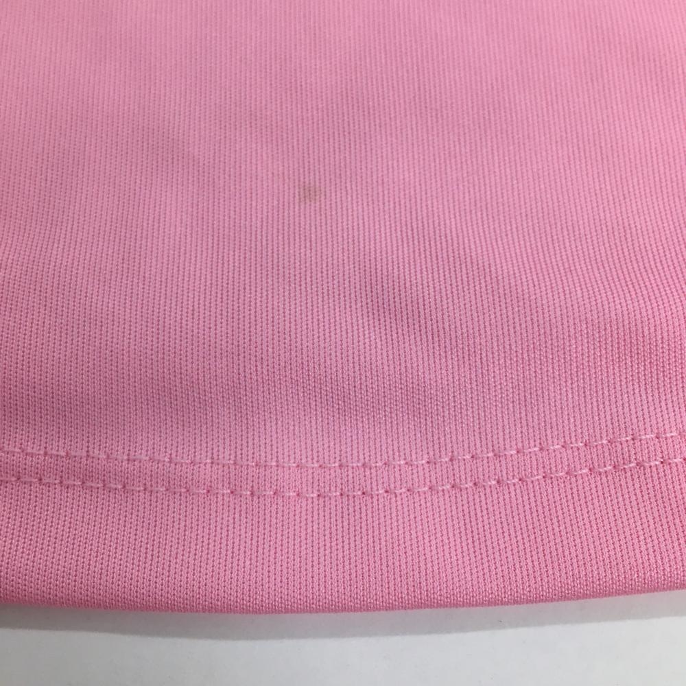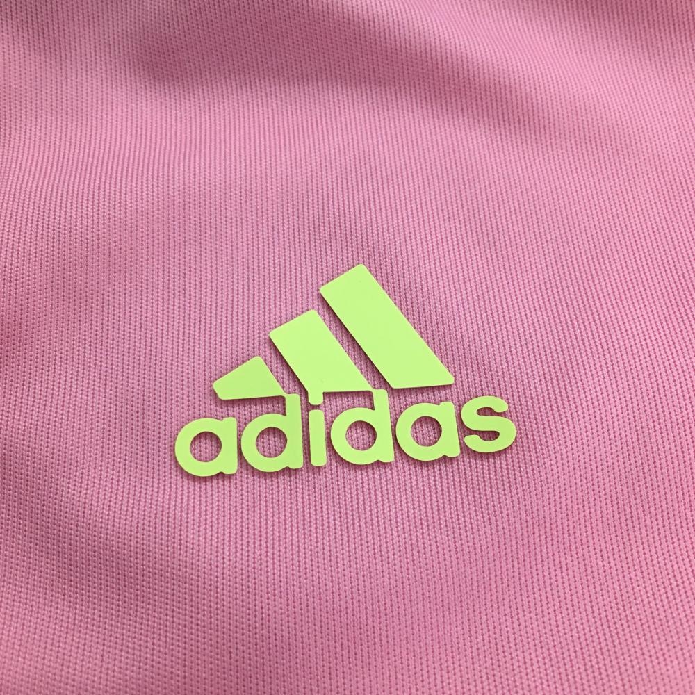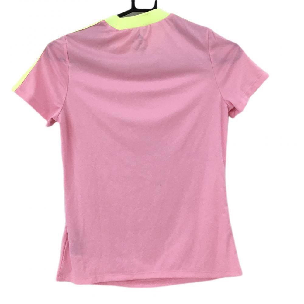 【超美品】アディダス 半袖ハイネックシャツ ピンク×蛍光イエロー 袖3ライン レディース S ゴルフウェア adidas