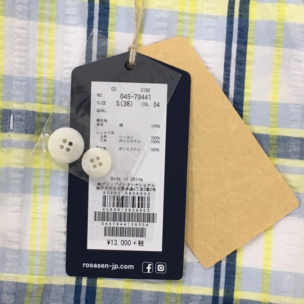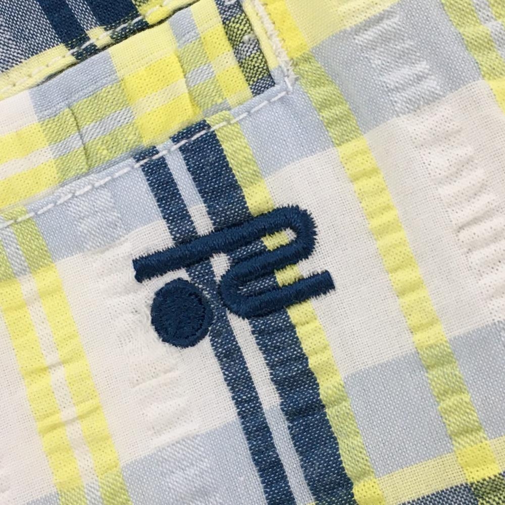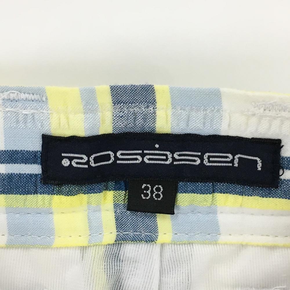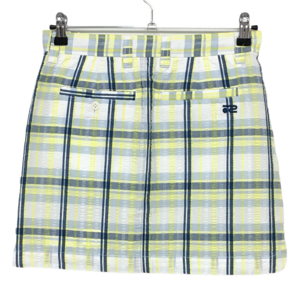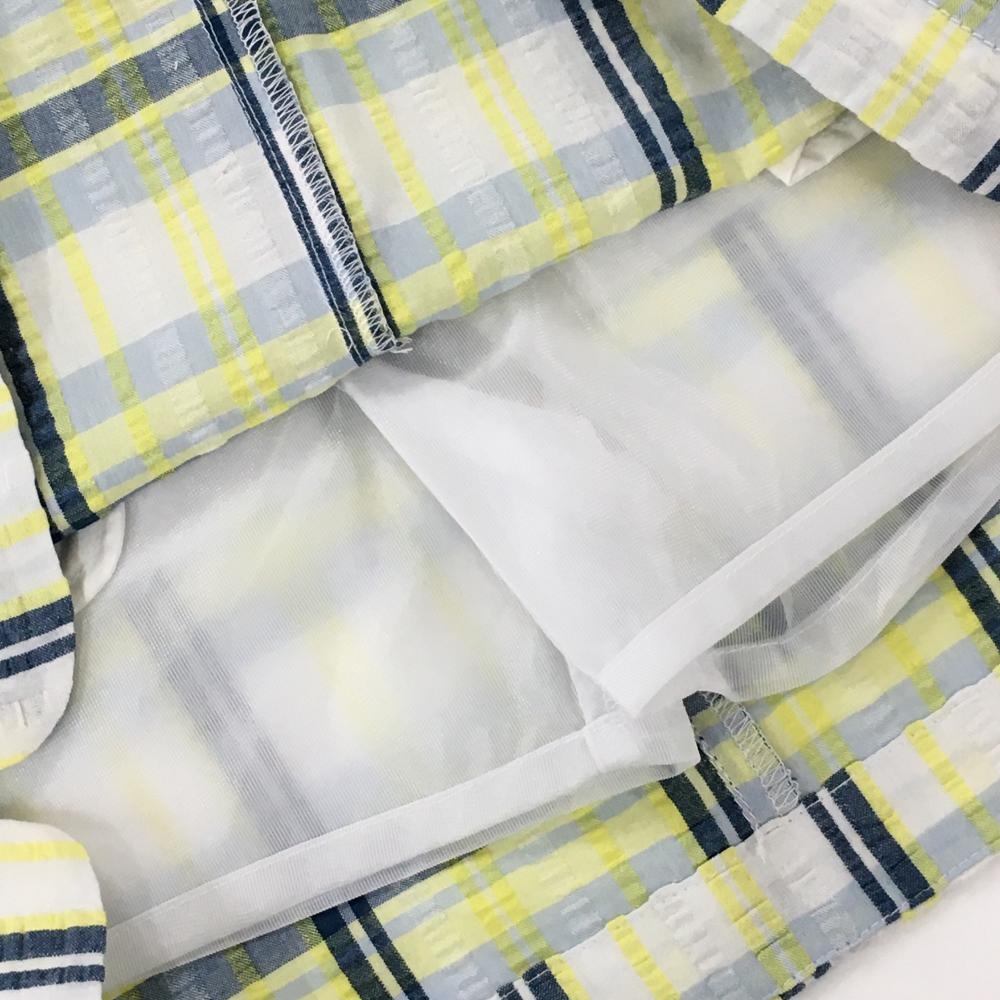 【新品】ロサーセン スカート イエロー×ネイビー チェック サッカー生地 内側メッシュインナーパンツ レディース 38 ゴルフウェア Rosasen
