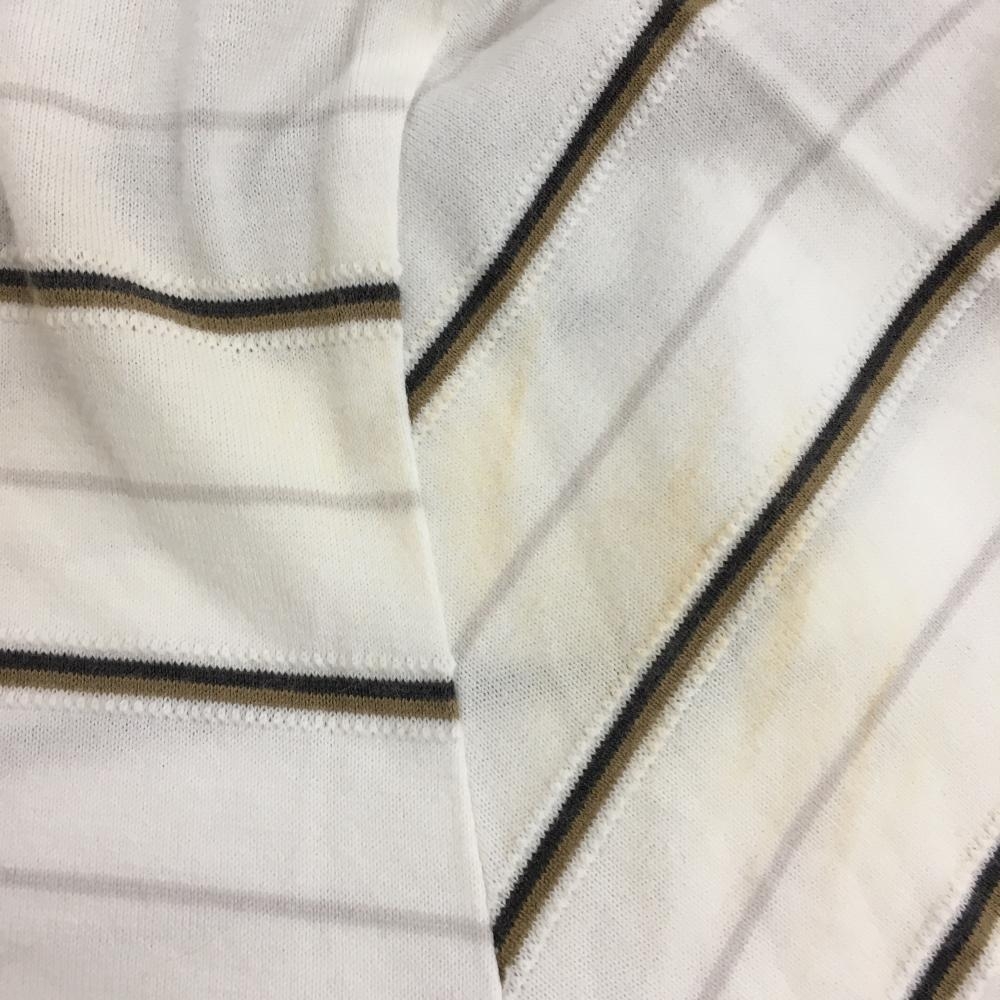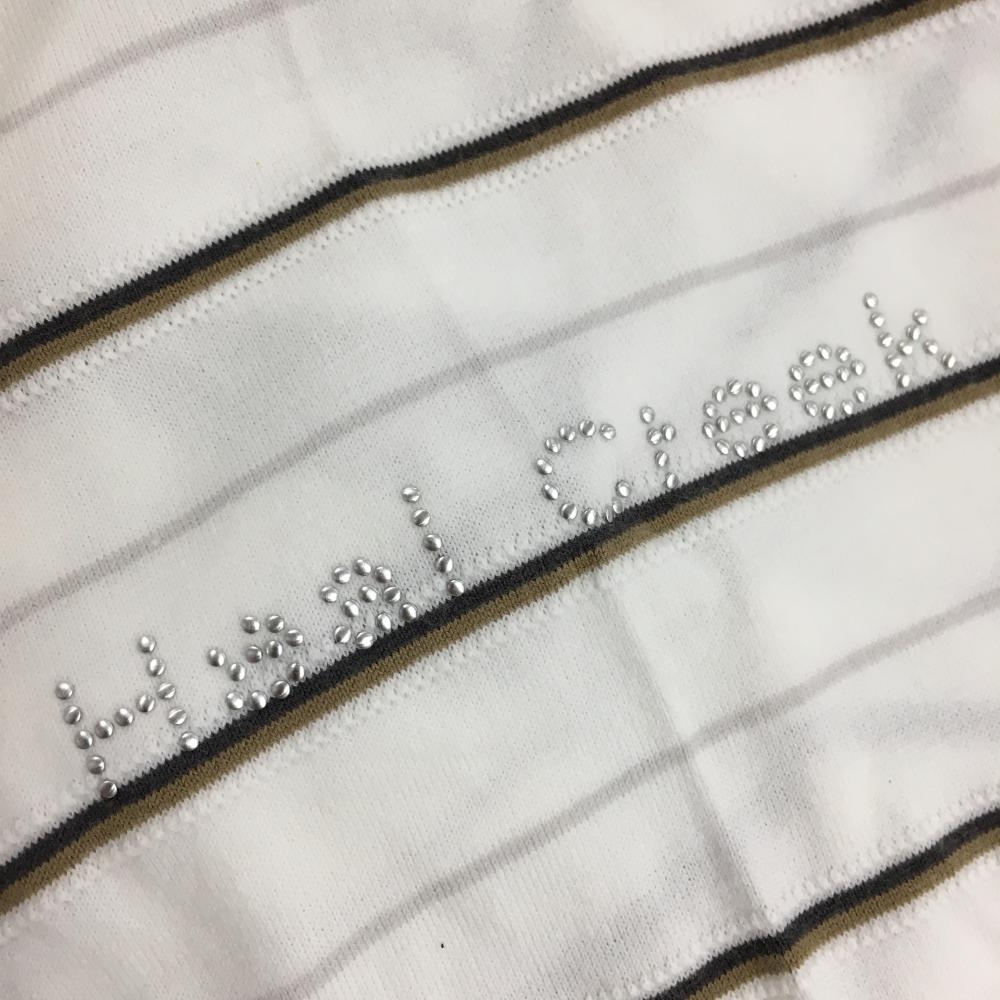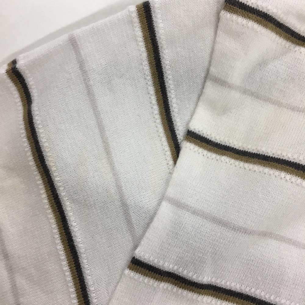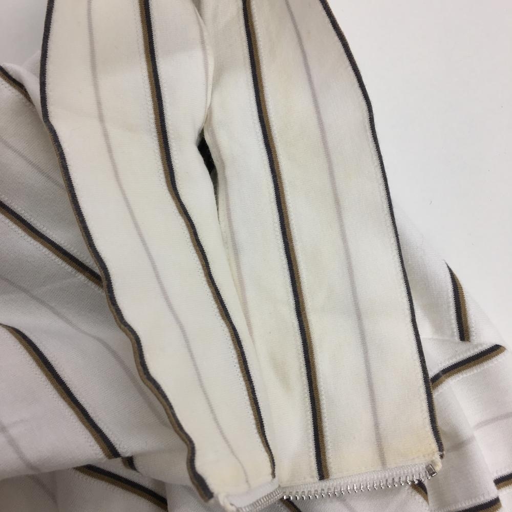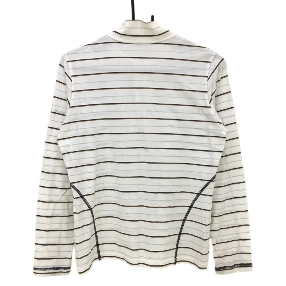 ヒールクリーク 長袖ハイネックシャツ 白×ブラウン ボーダー ハーフジップ レディース 42 ゴルフウェア Heal Creek
