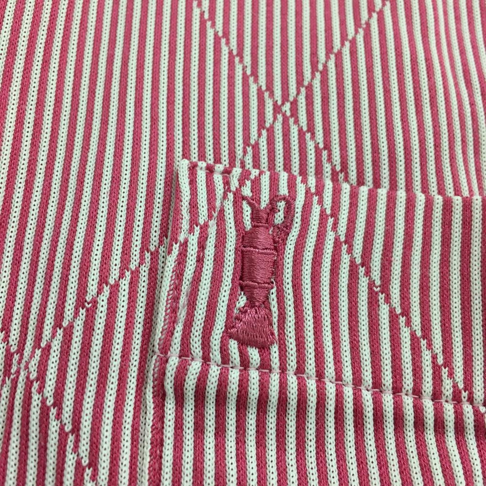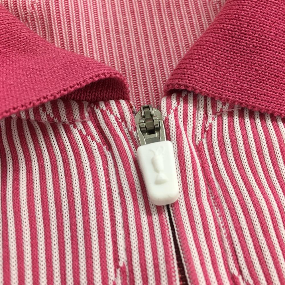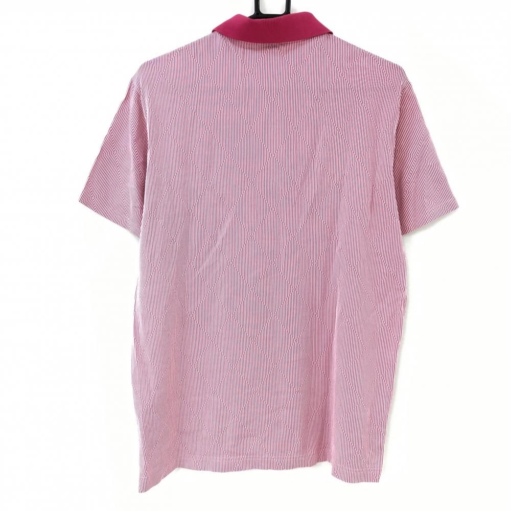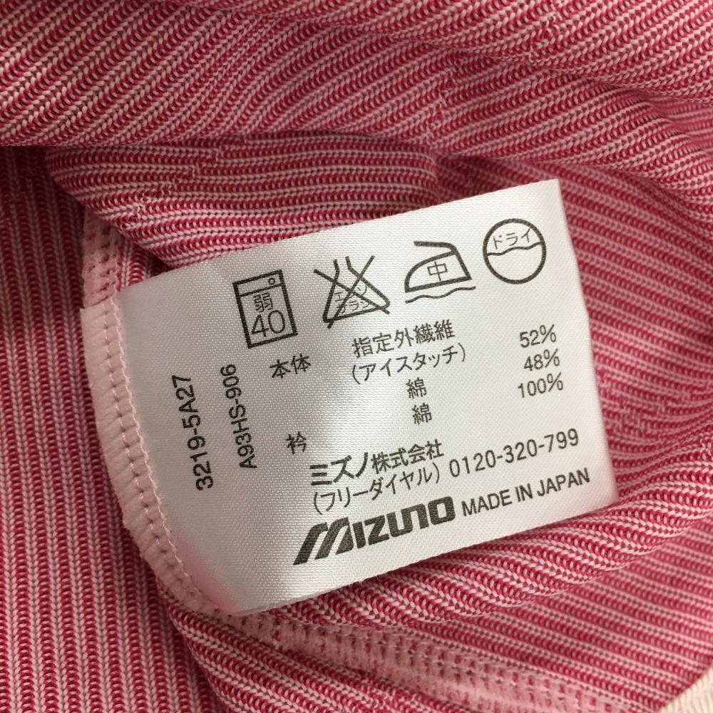 【美品】ミズノ THE OPEN 半袖ポロシャツ ピンク×白 細ストライプ ダイヤ織生地 アイスタッチ混 メンズ L ゴルフウェア MIZUNO