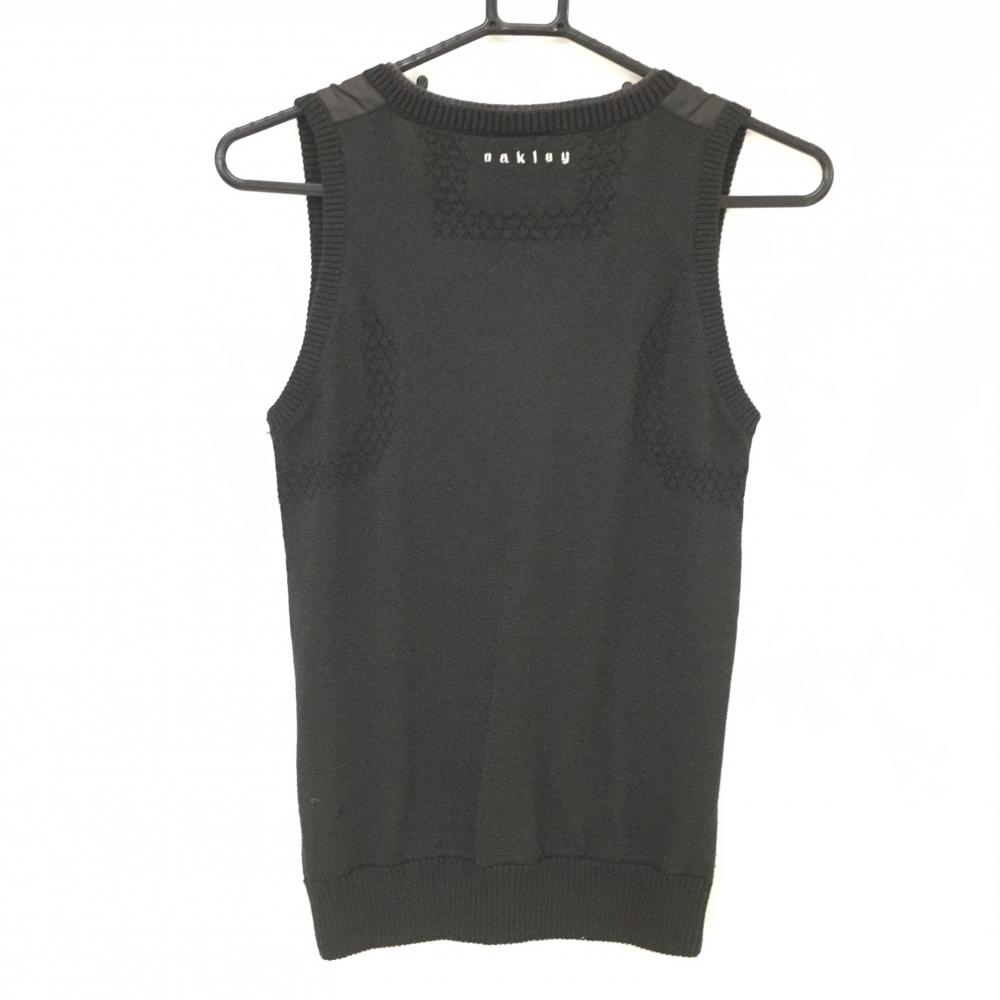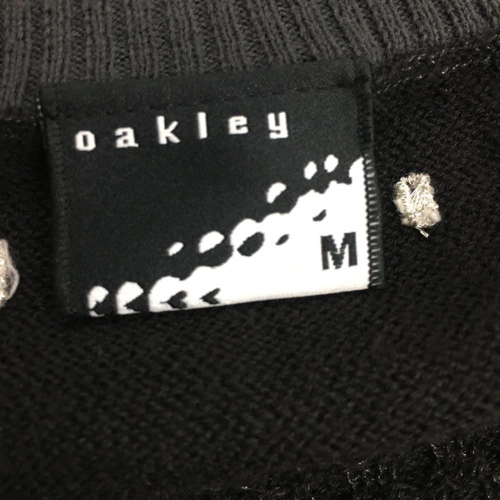 オークリー ニットベスト グレー×黒 Vネック ラメ 前面凹凸柄 レディース M ゴルフウェア Oakley