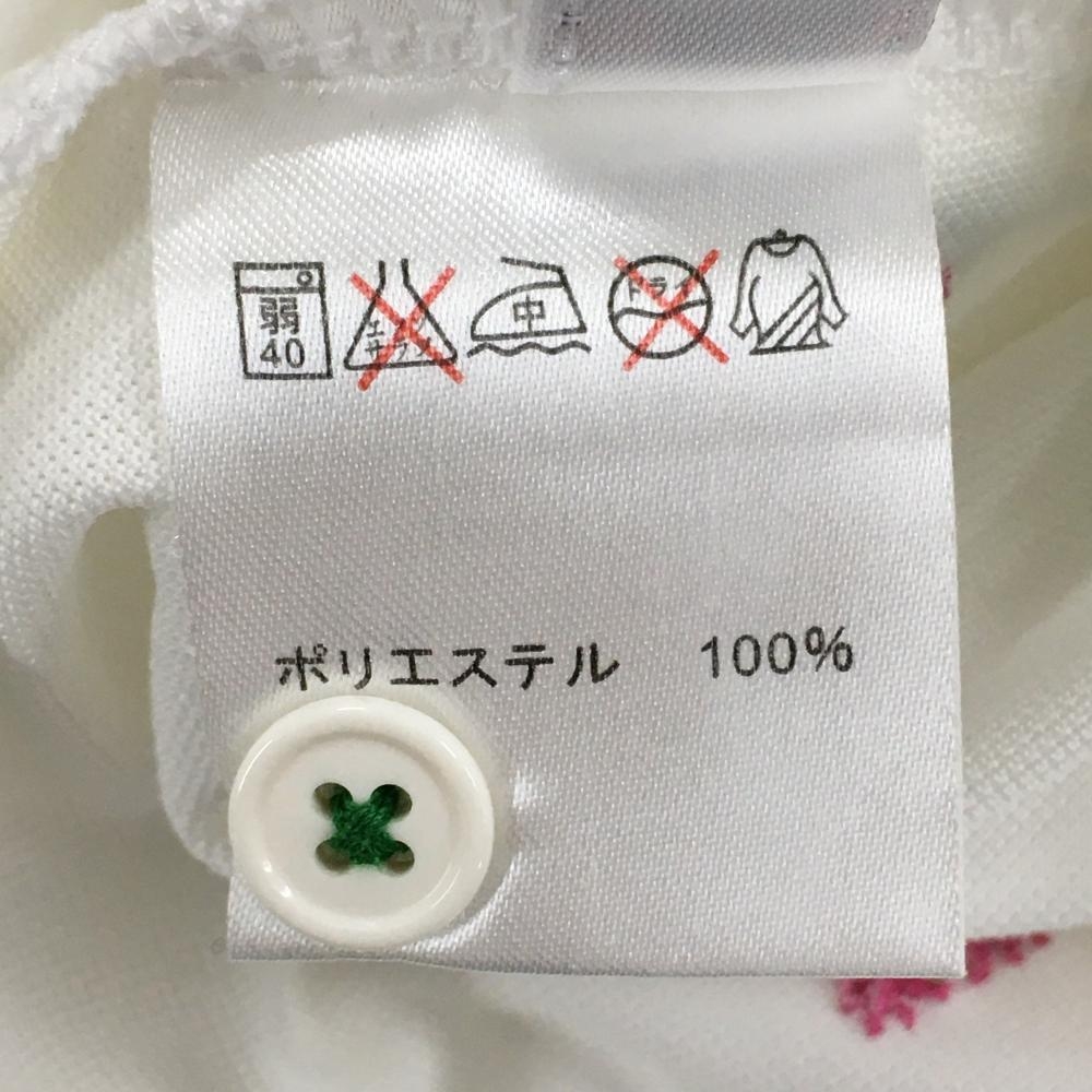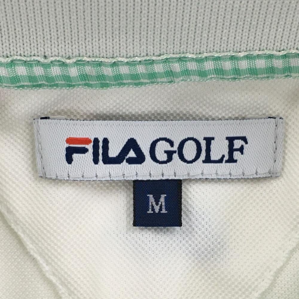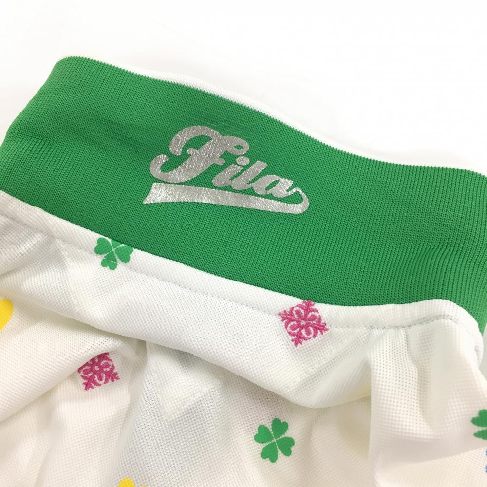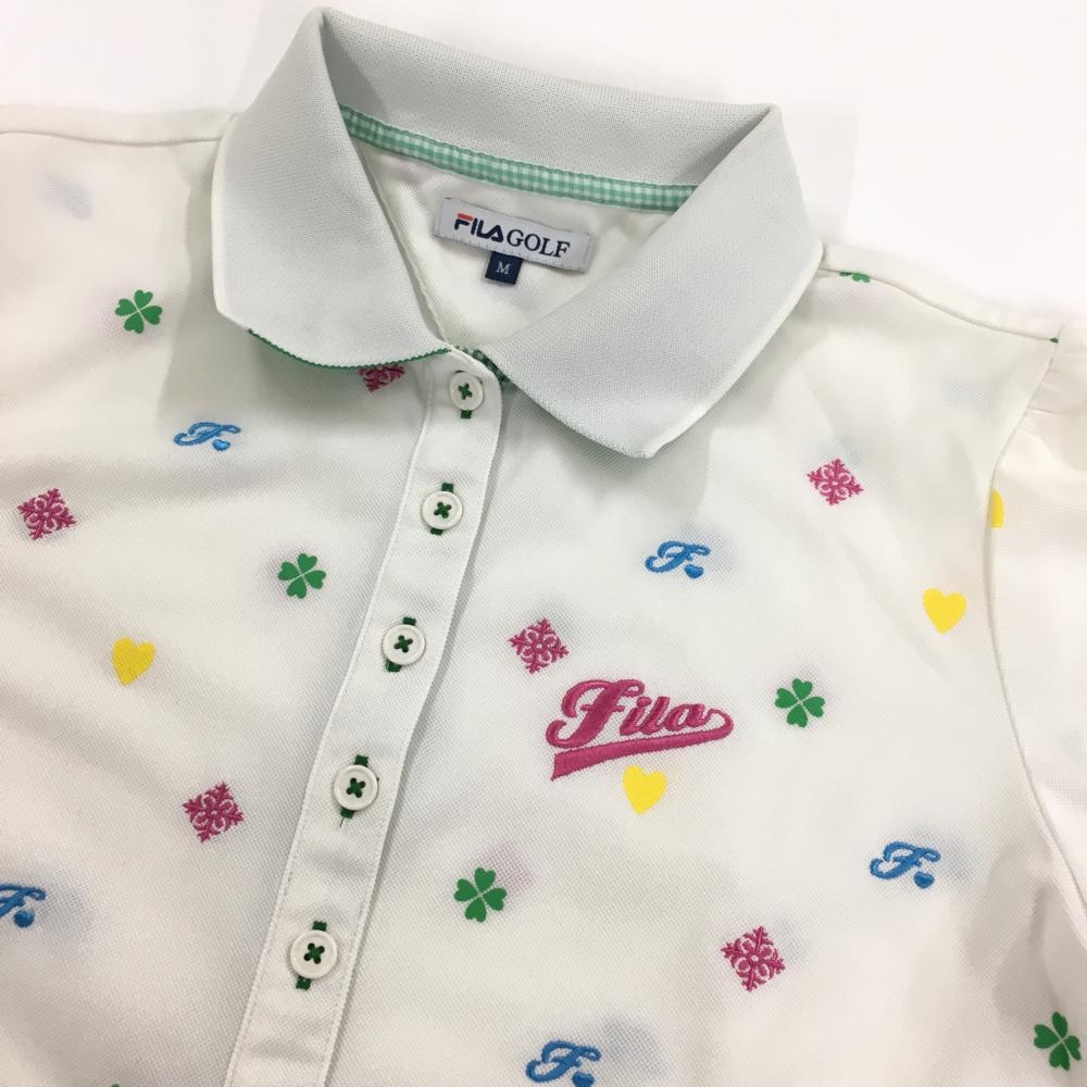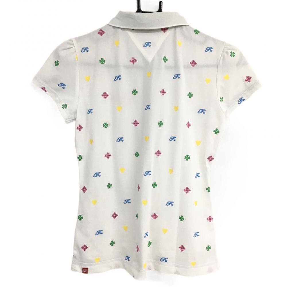 【美品】フィラゴルフ 半袖ポロシャツ 白×マルチ 総柄 刺しゅう ハート レディース M ゴルフウェア FILA GOLF