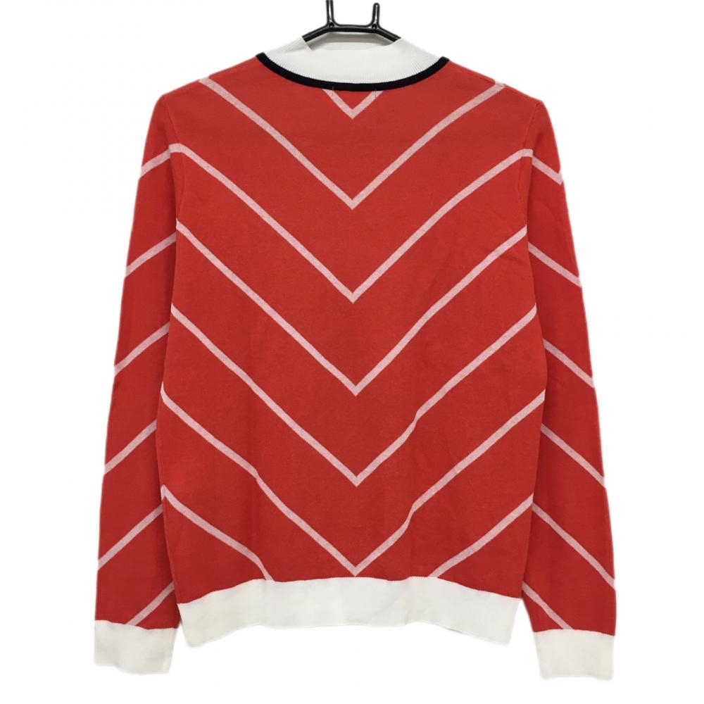 【美品】ヒールクリーク セーター オレンジ×白 薄手 ニット ハイネック Vライン レディース 40 ゴルフウェア Heal Creek
