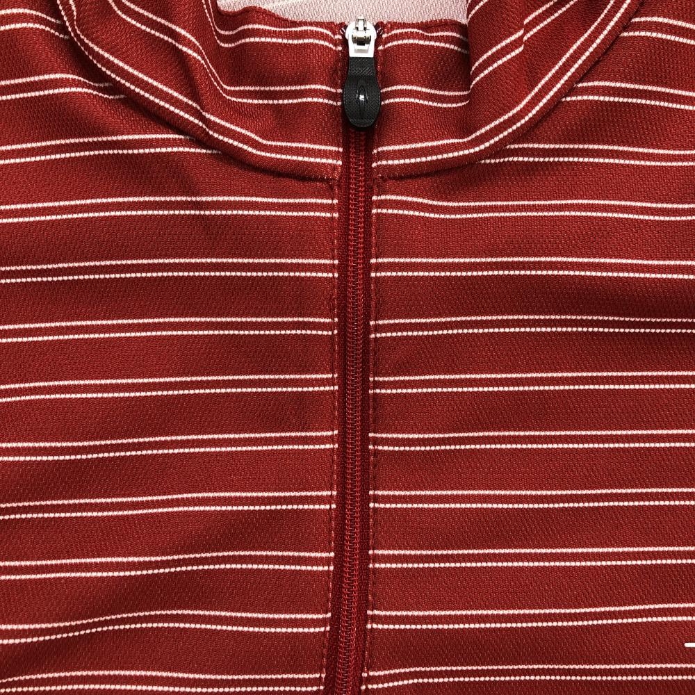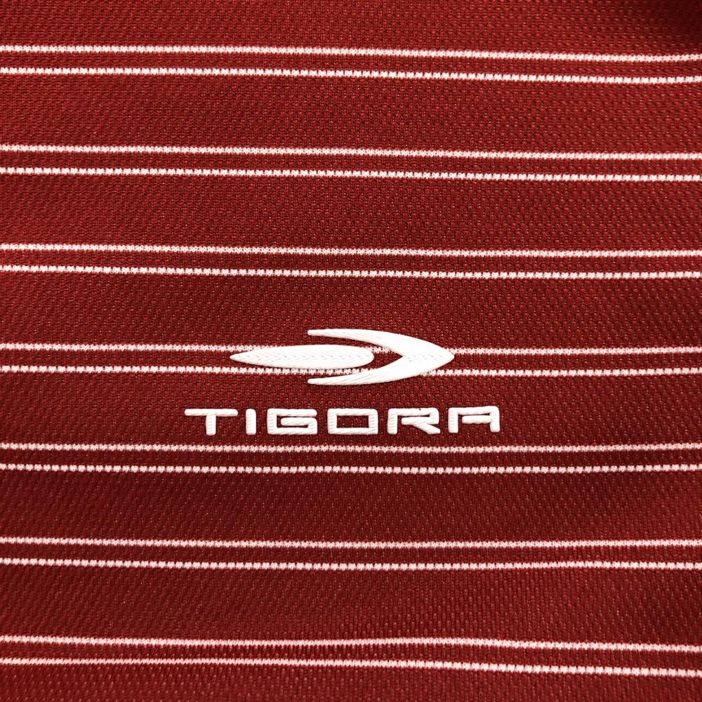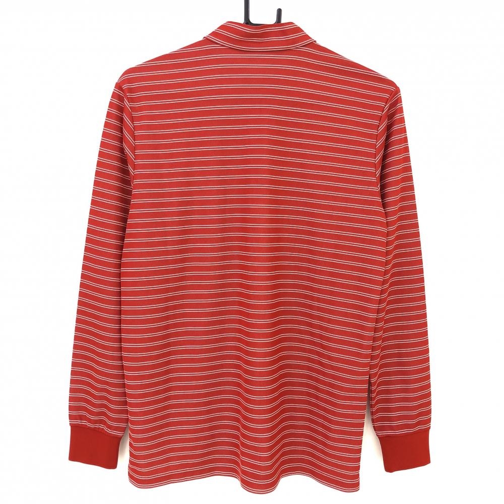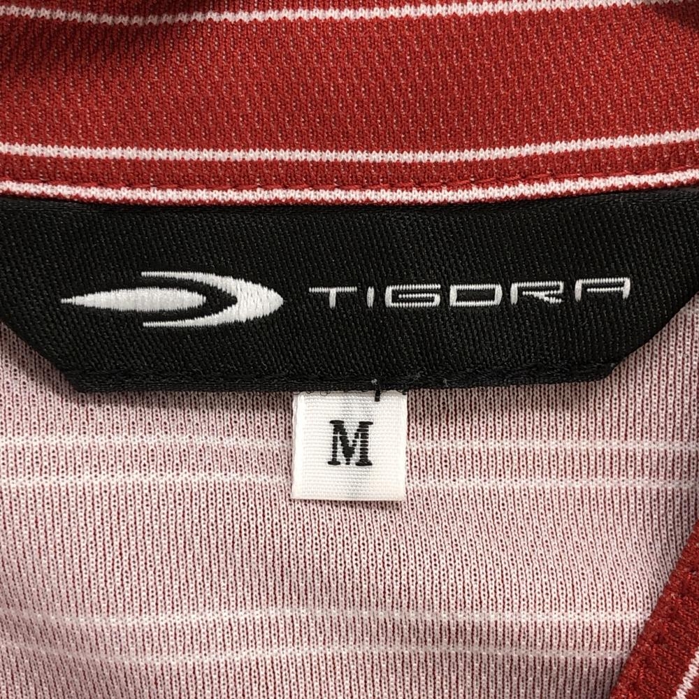 【超美品】ティゴラ 長袖ハイネックシャツ レッド×白 ボーダー ハーフジップ メンズ M ゴルフウェア TIGORA