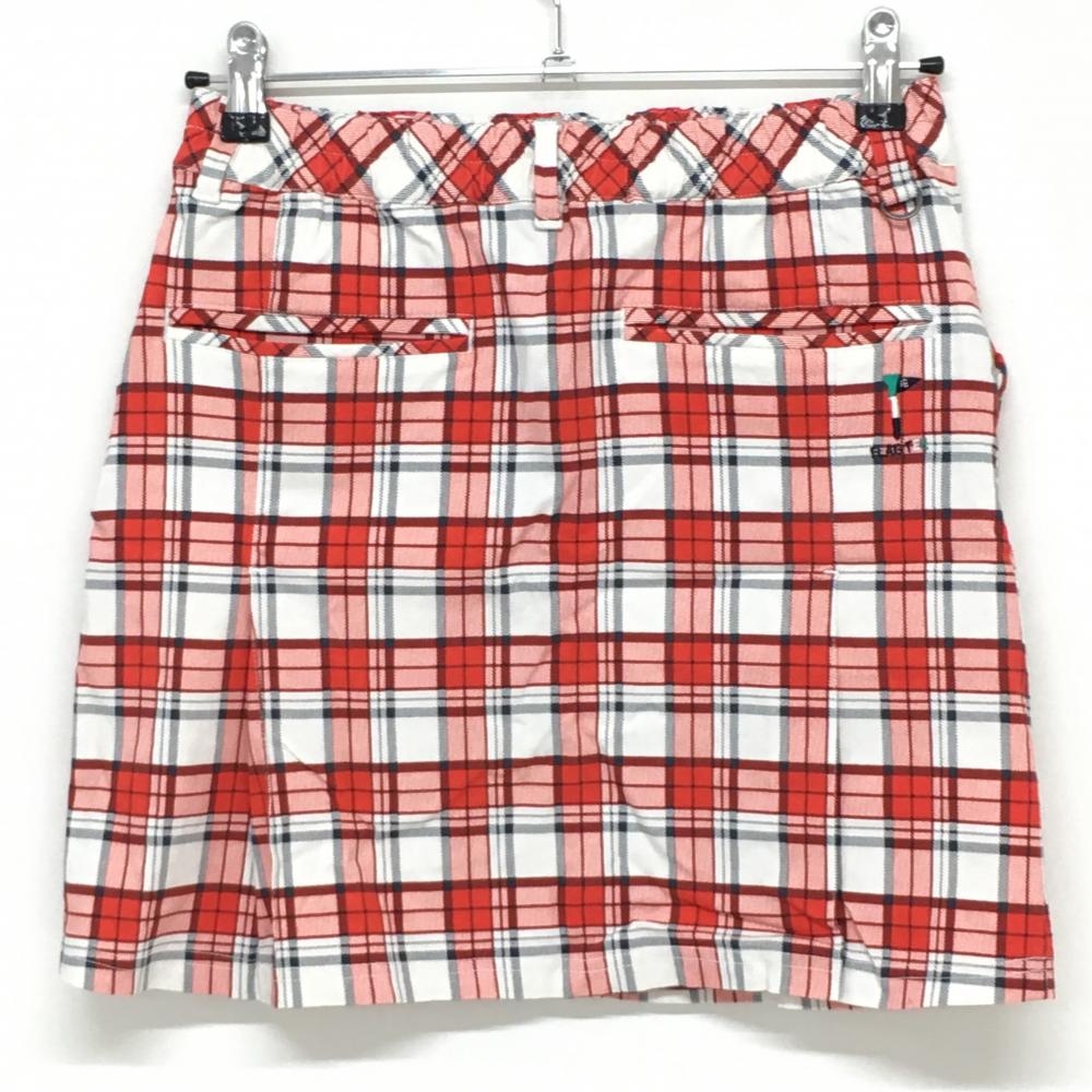 【美品】フィラゴルフ スカート レッド×白 チェック ウエストゴム レディース M ゴルフウェア FILA GOLF