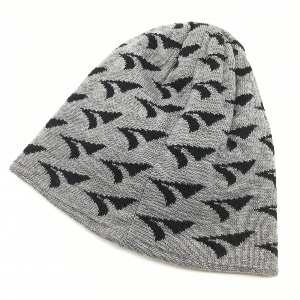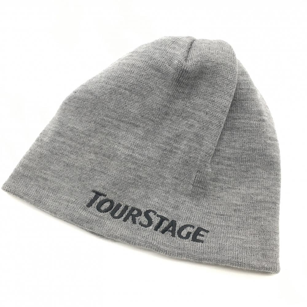 【超美品】ツアーステージ リバーシブルニット帽 グレー×黒 ロゴ総柄 ゴルフウェア TOURSTAGE