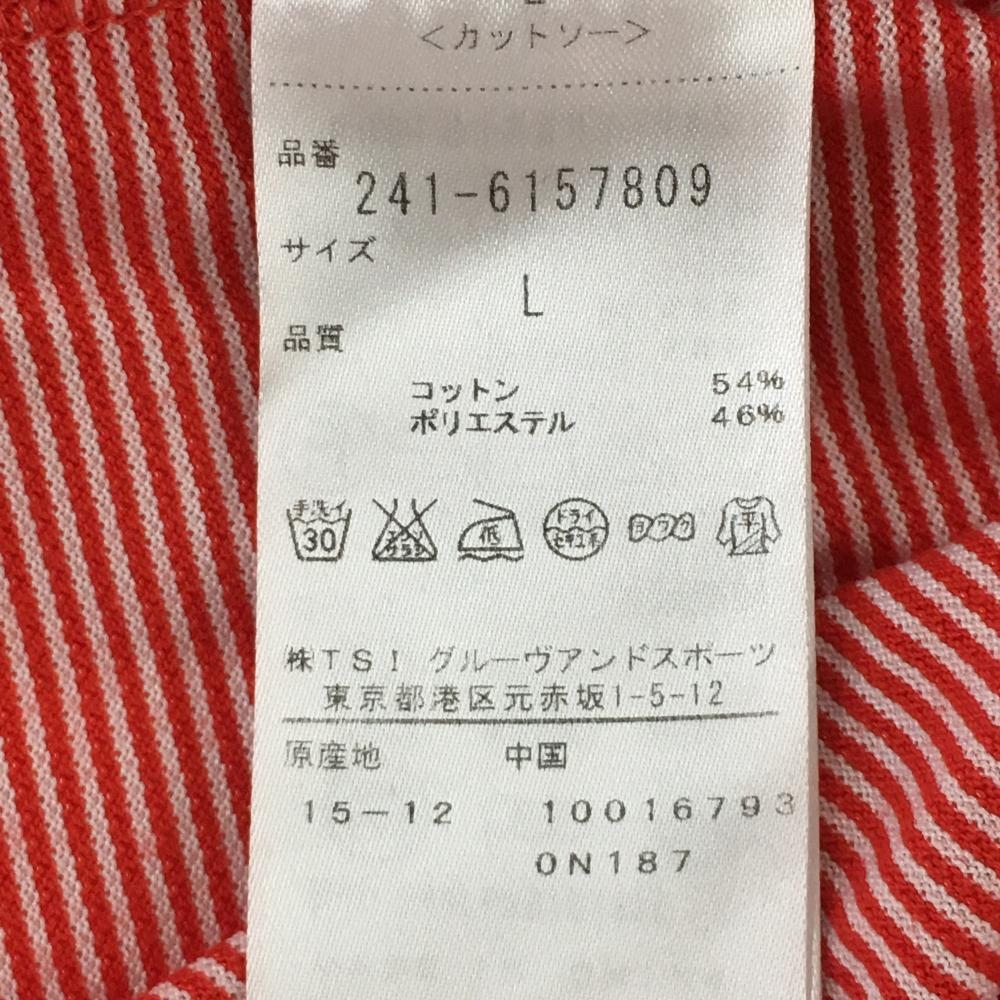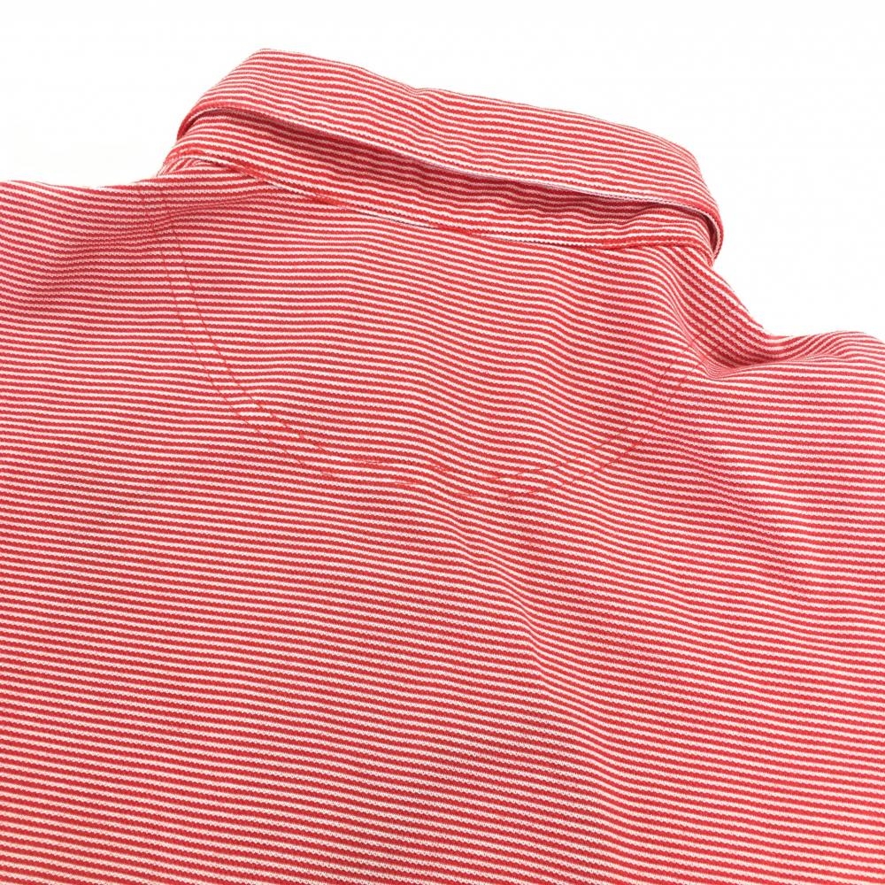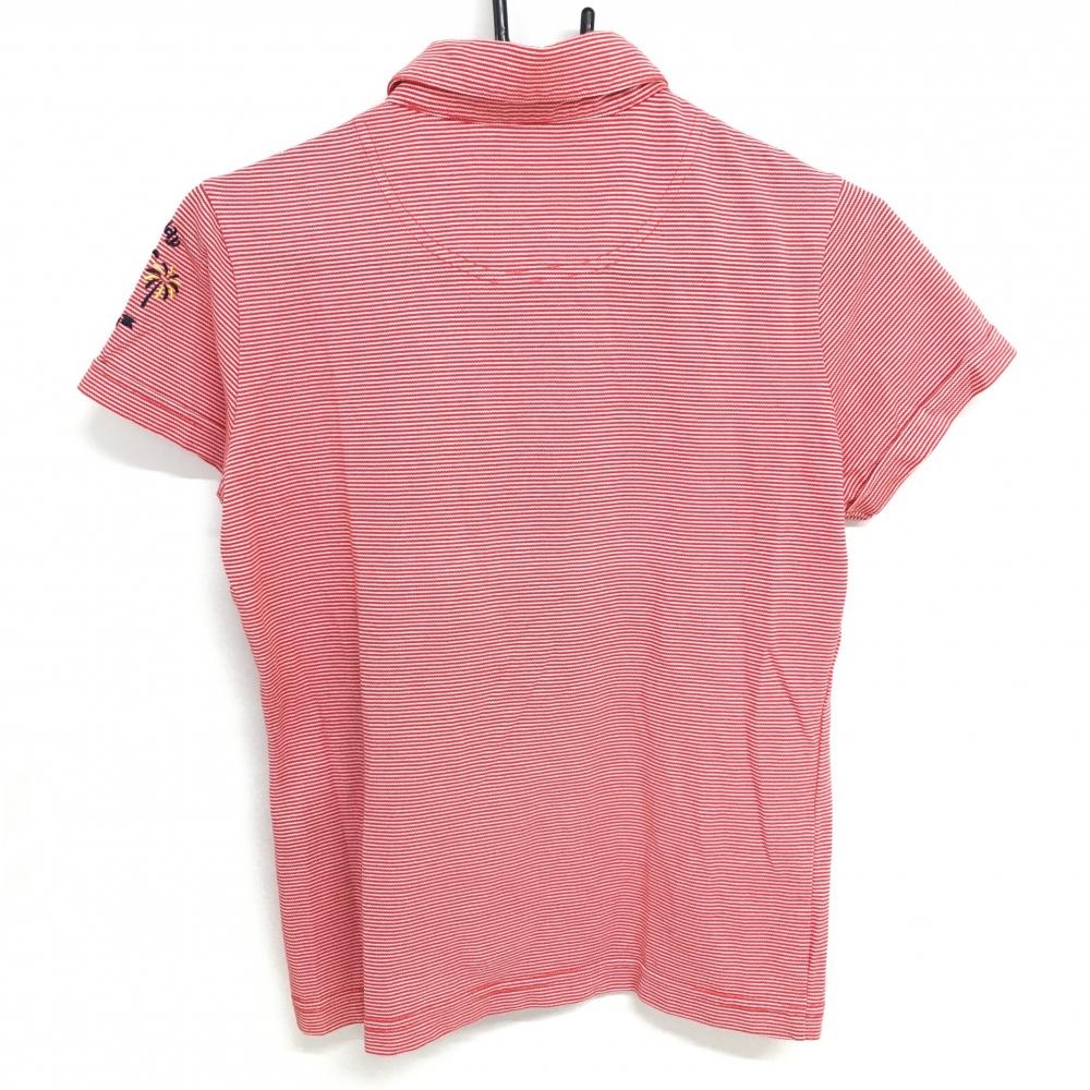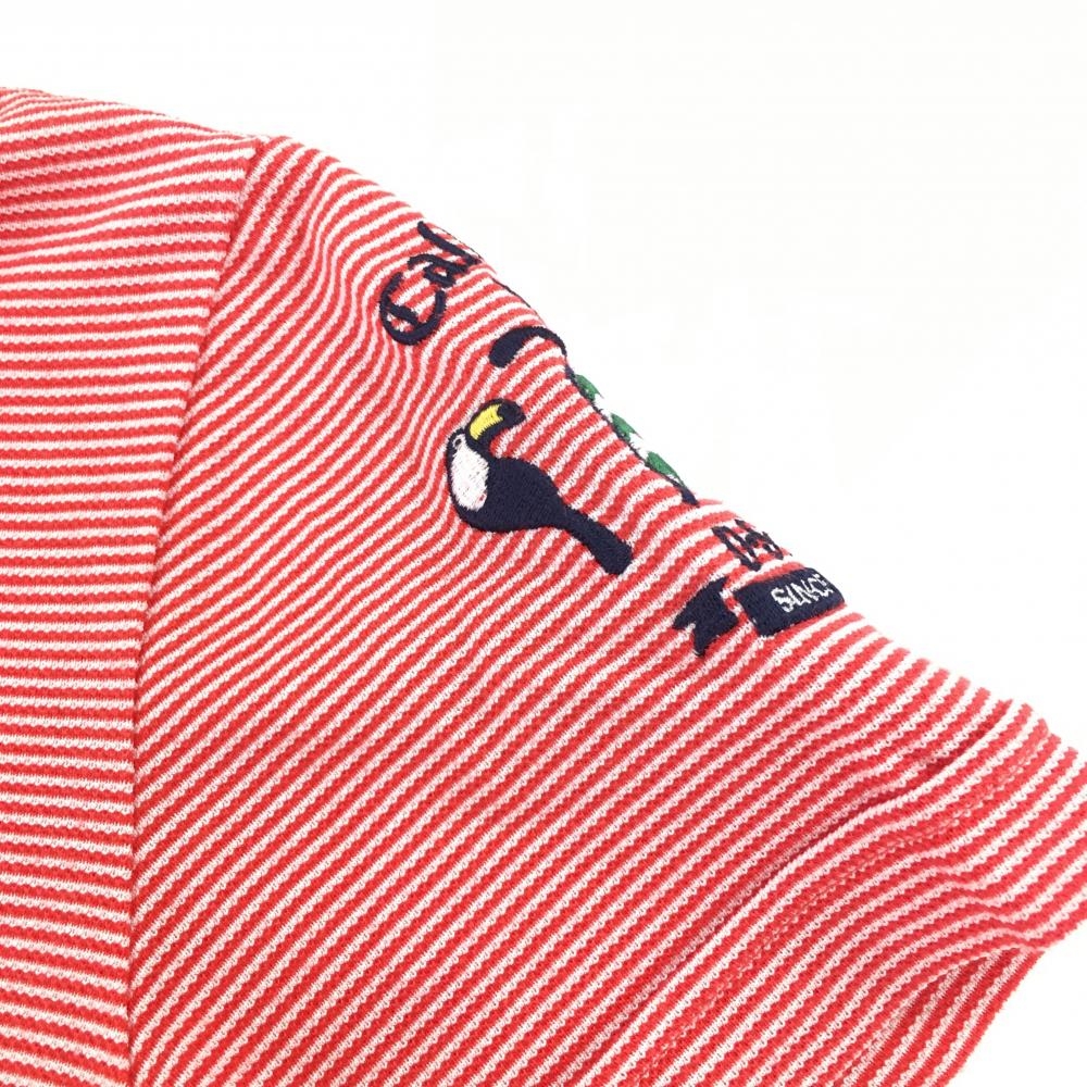 【美品】キャロウェイ 半袖ポロシャツ レッド×白 ボーダー 内側一部鳥柄 袖ロゴ レディース L ゴルフウェア Callaway