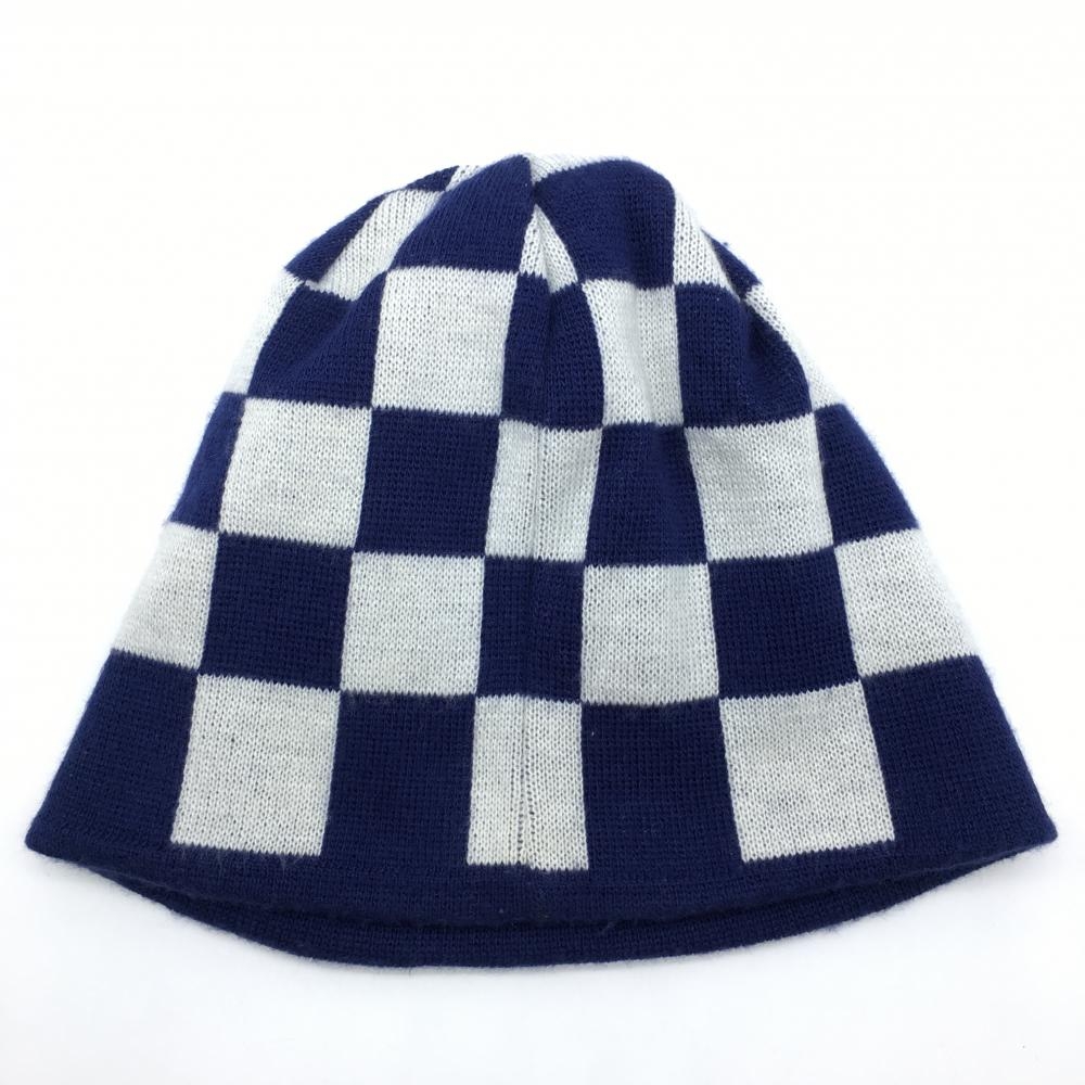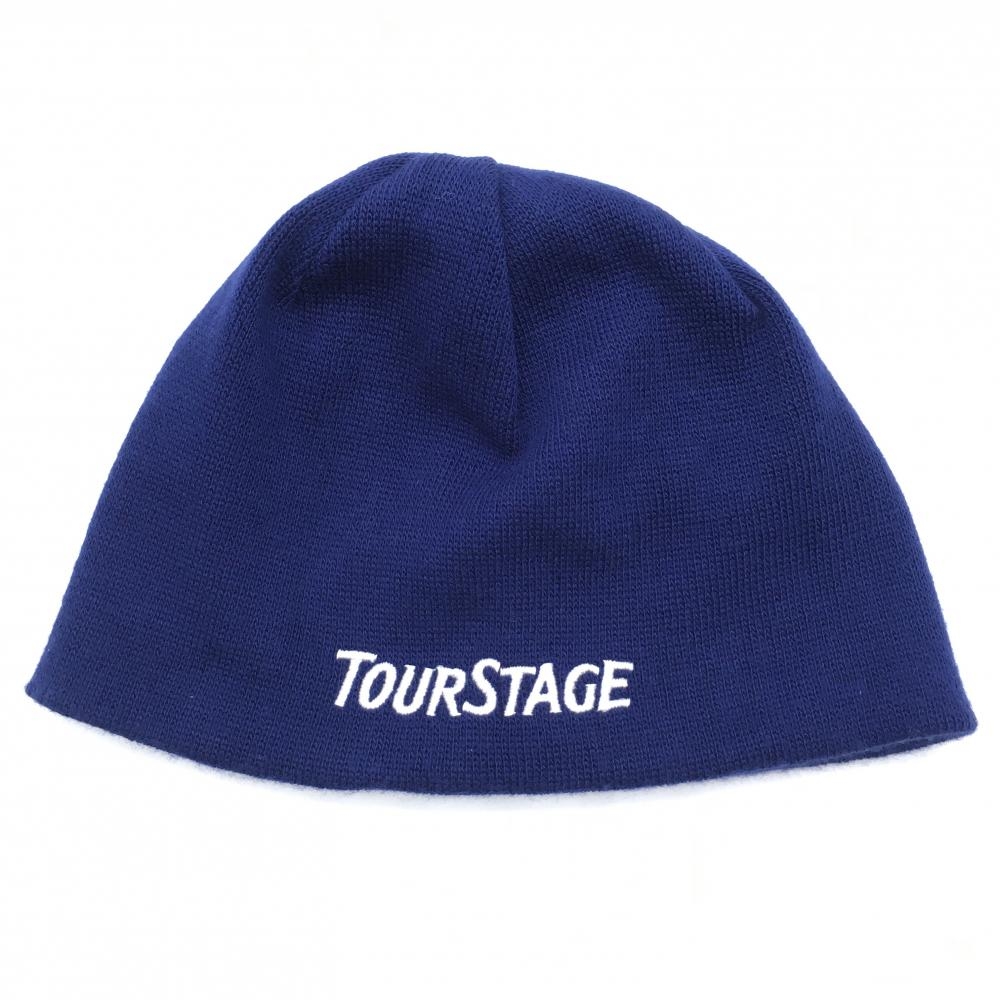 【超美品】ツアーステージ リバーシブルニット帽 ネイビー×白 ブロックチェック フリーサイズ(約56cm-約59cm) ゴルフウェア TOURSTAGE