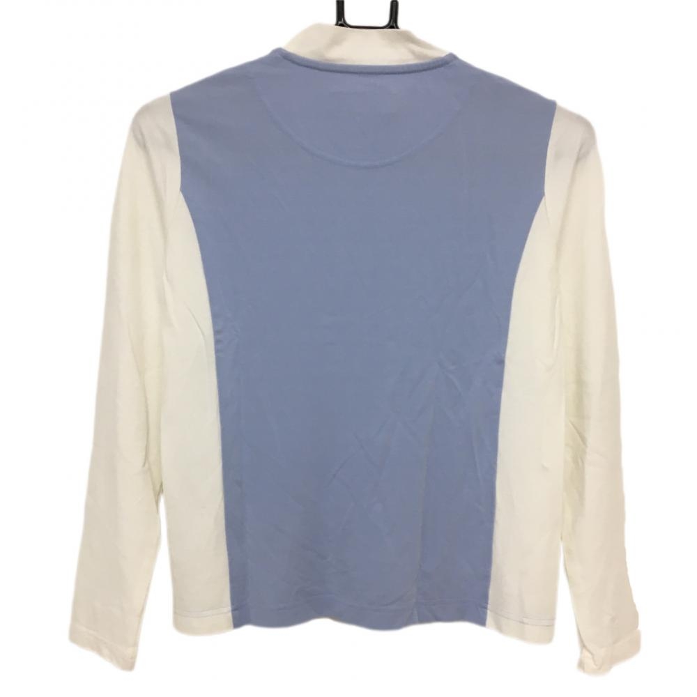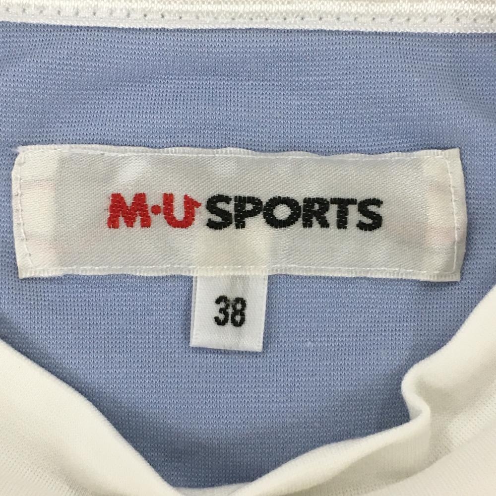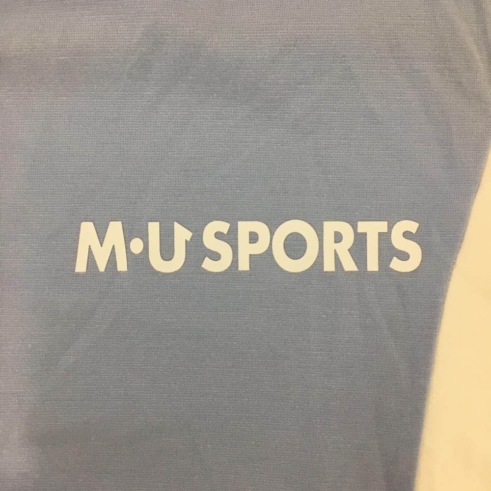 【超美品】MUスポーツ 長袖ハイネックシャツ ブルー×白 胸元ロゴ ストレッチ レディース 38 ゴルフウェア M・U SPORTS