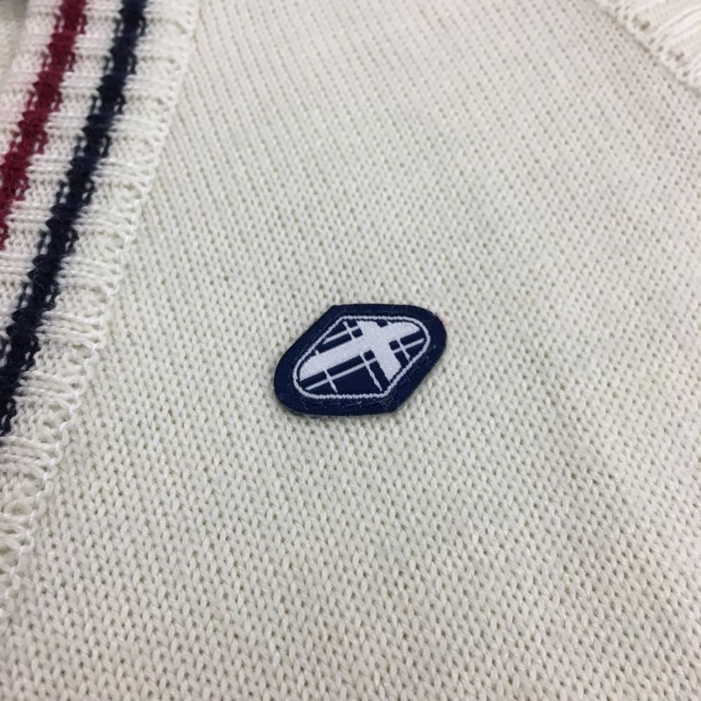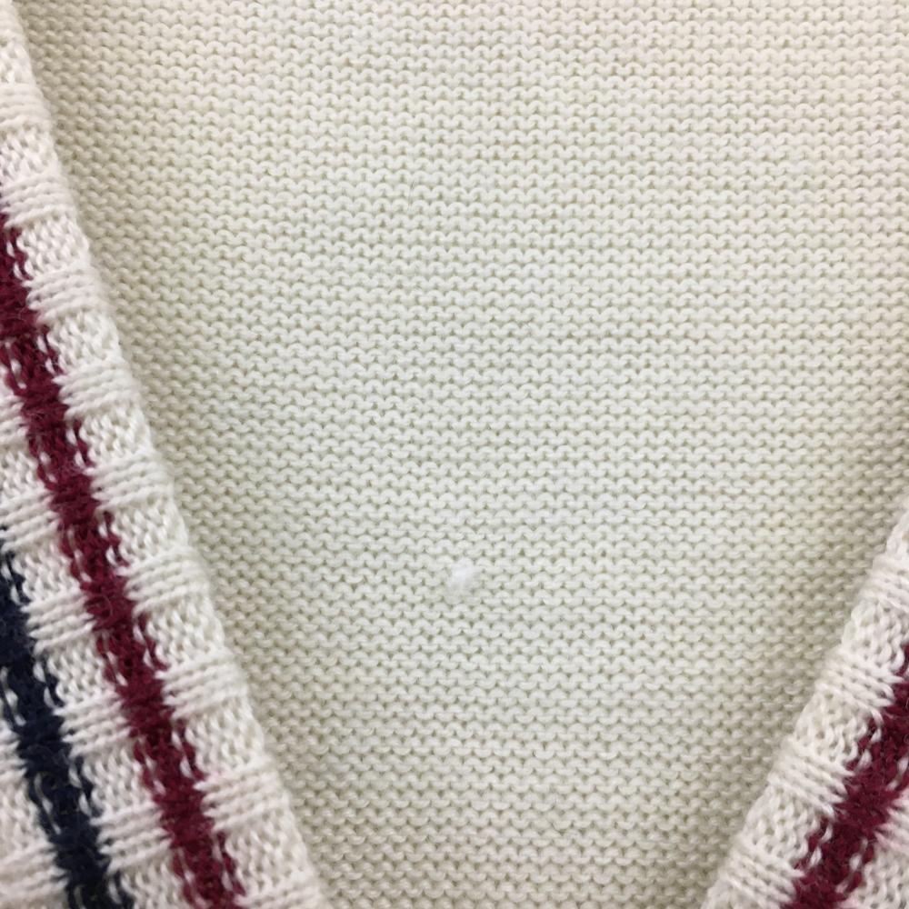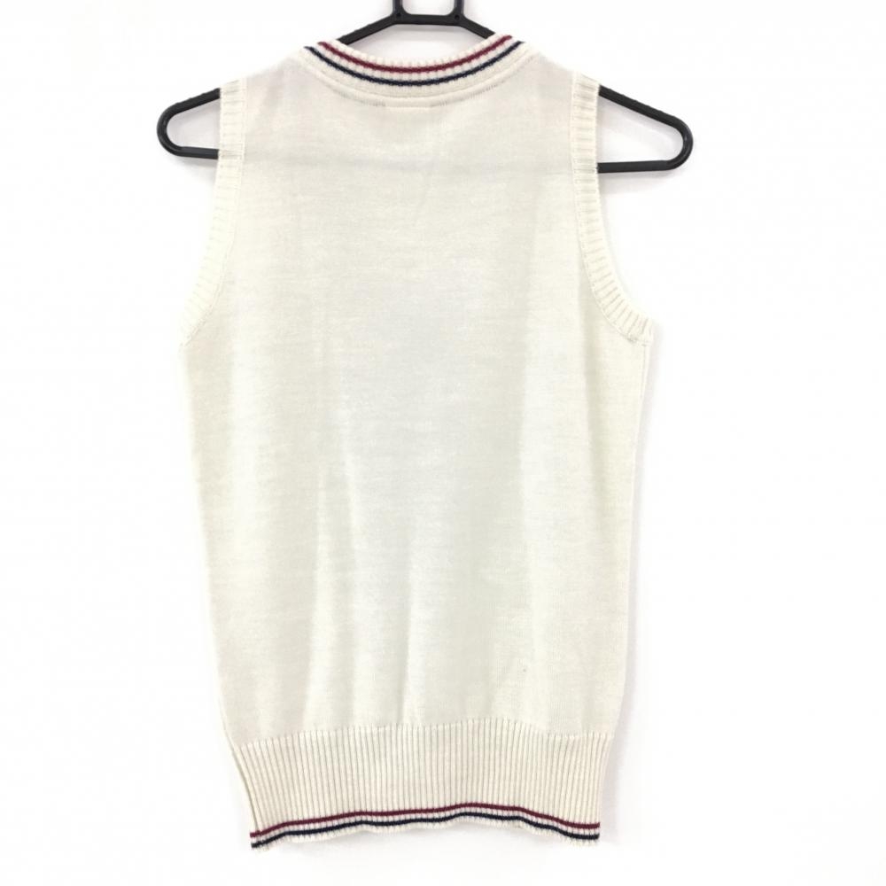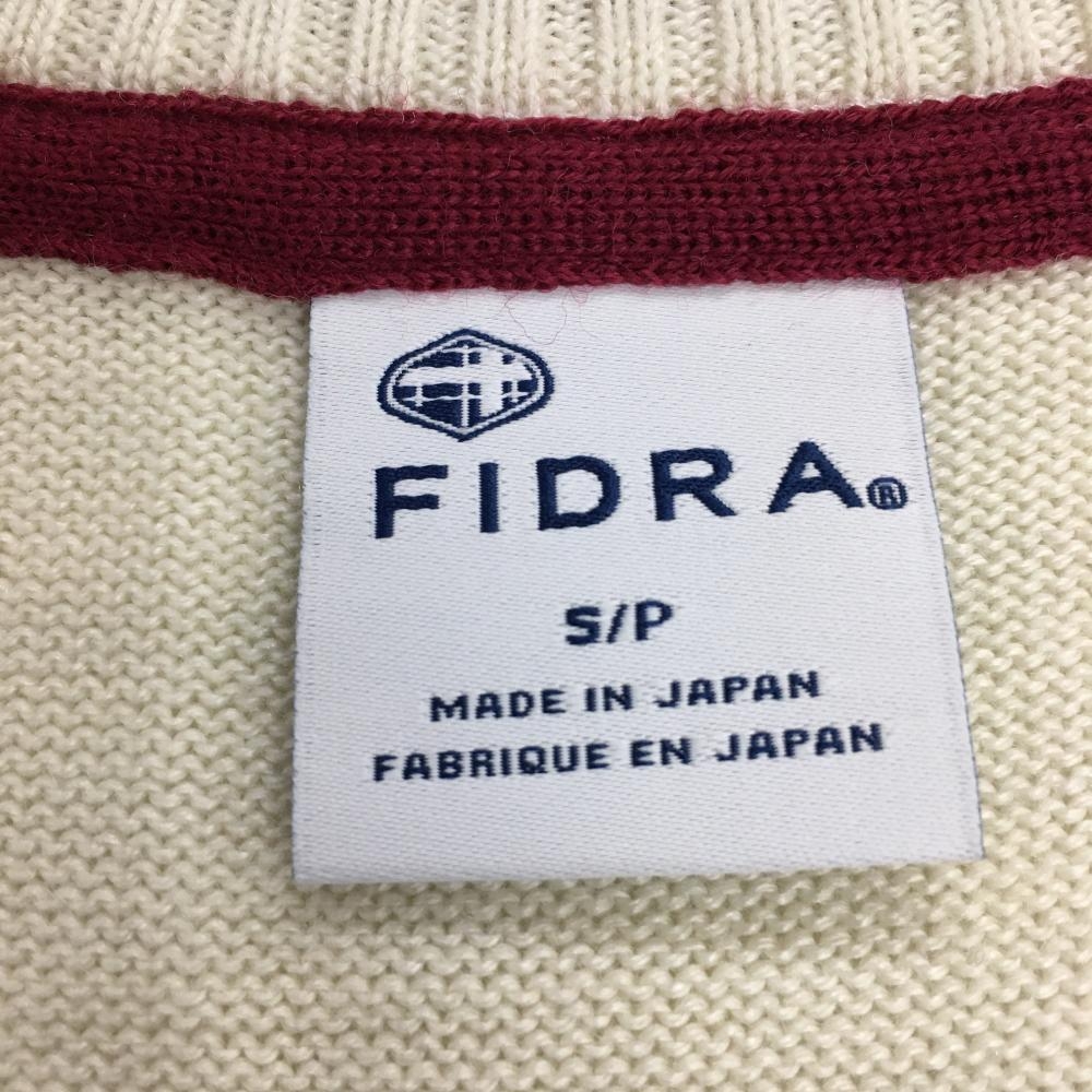 【美品】フィドラ ニットベスト アイボリー×ネイビー×レッド Vネック ボタン レディース S/P ゴルフウェア FIDRA