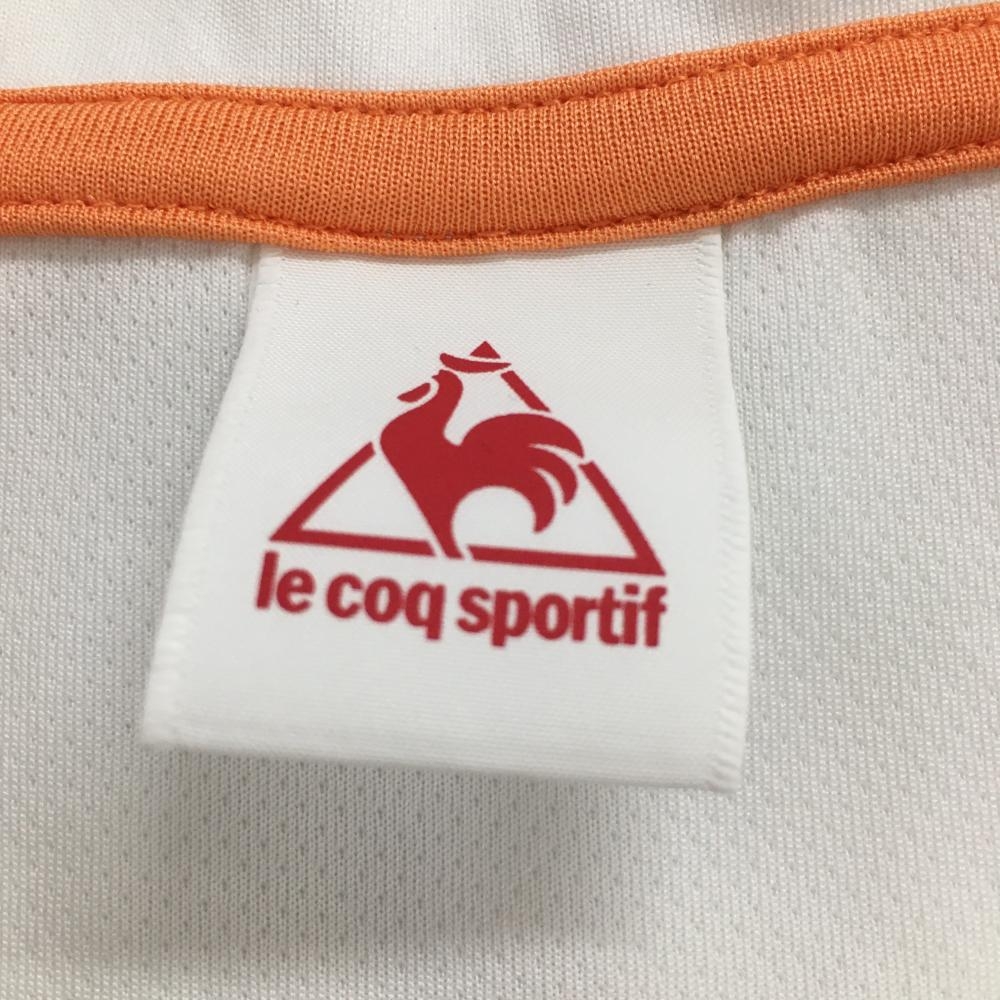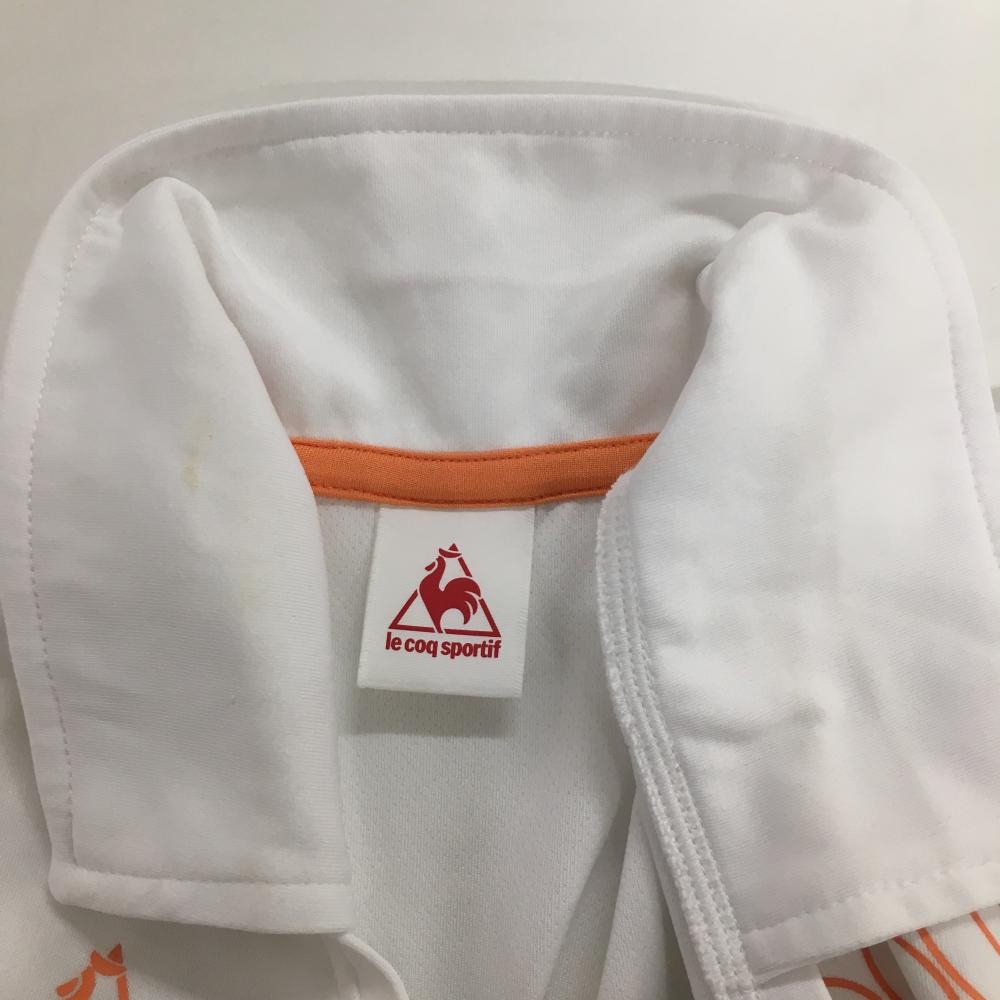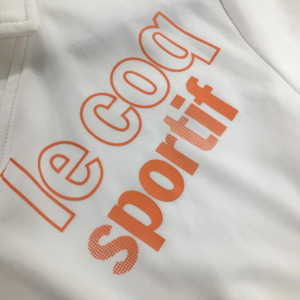 ルコック 半袖スキッパーシャツ 白×オレンジ ロゴプリント レディース O ゴルフウェア le coq sportif