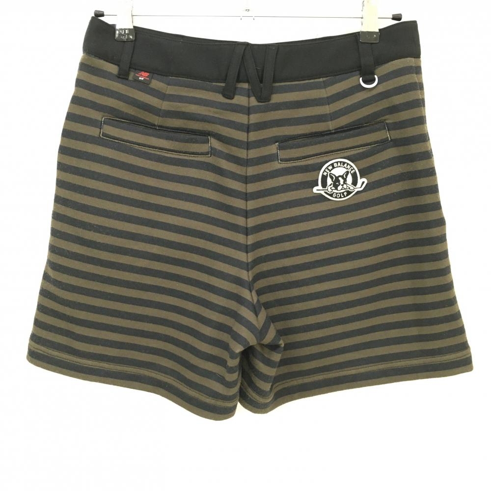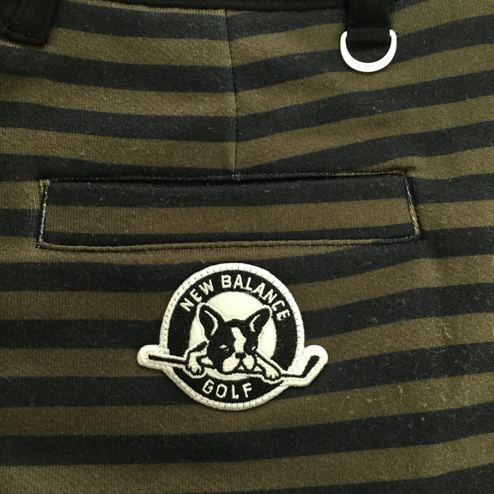 【美品】ニューバランス ショートパンツ 黒×カーキ ボーダー柄 総柄 レディース 1(M) ゴルフウェア New Balance