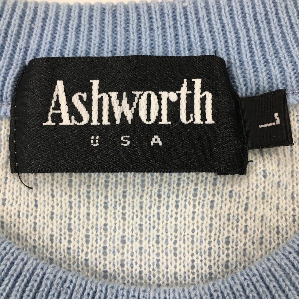 【美品】アシュワース セーター ライトブルー×白 織生地総柄 レディース L ゴルフウェア ASHWORTH