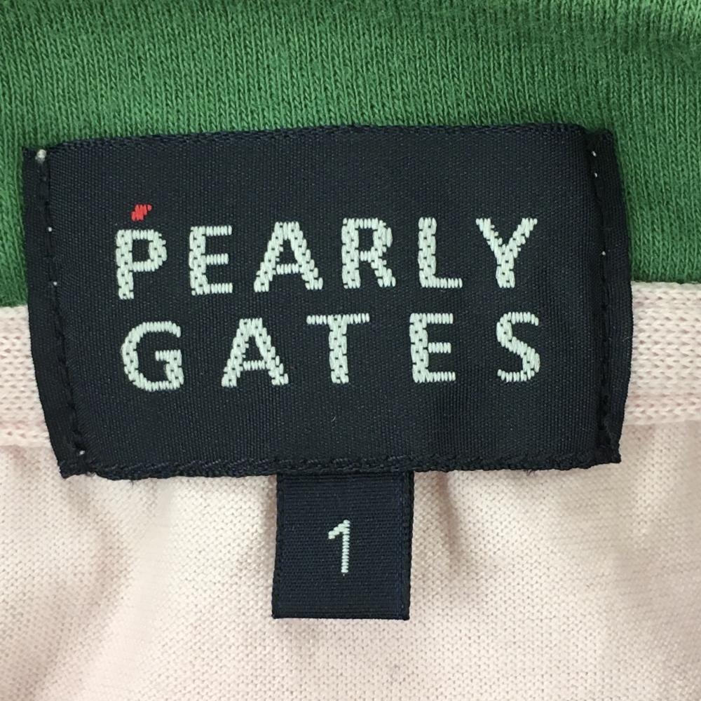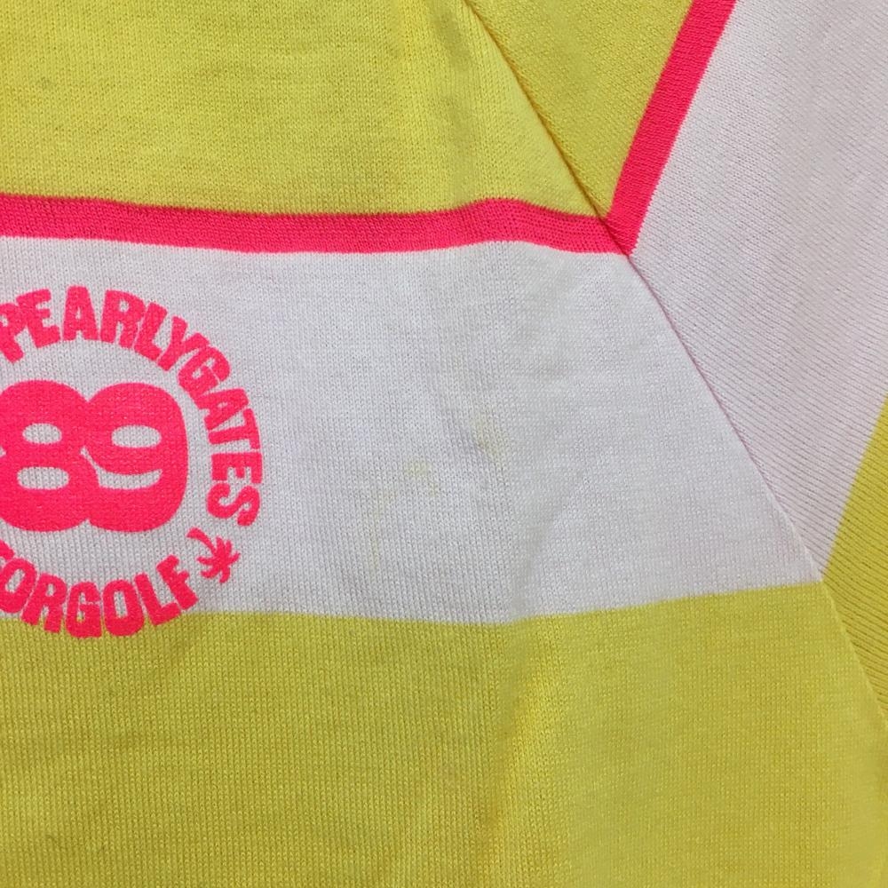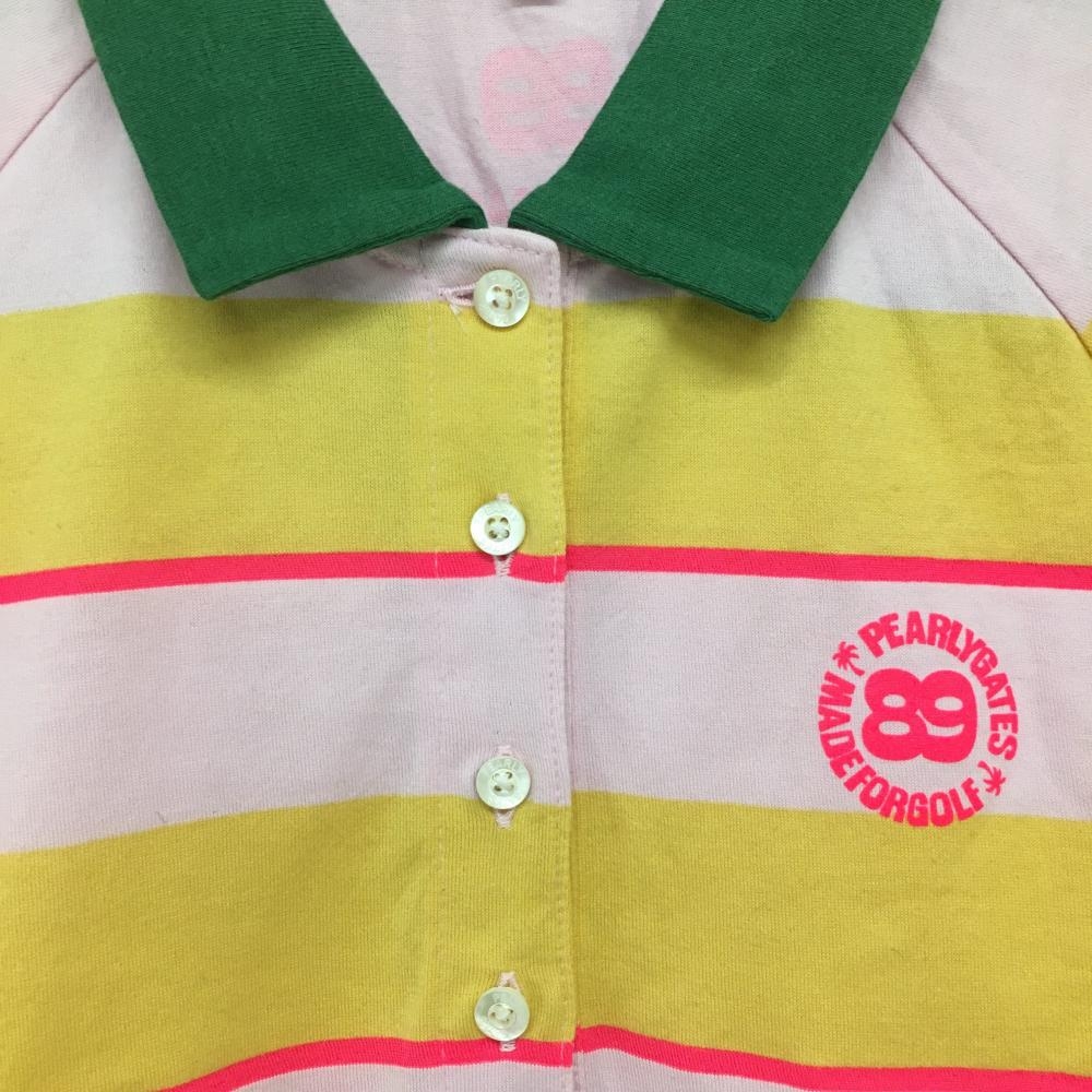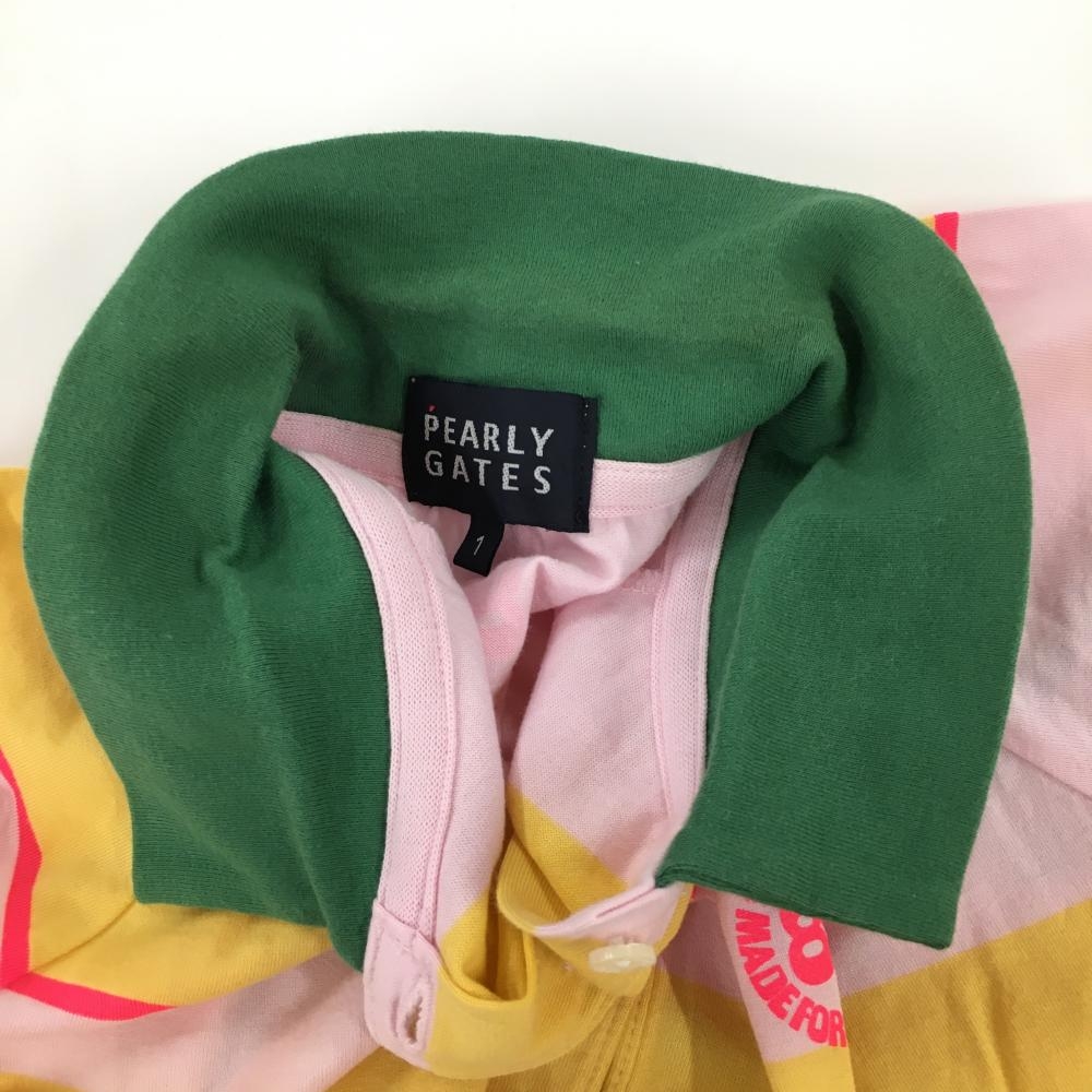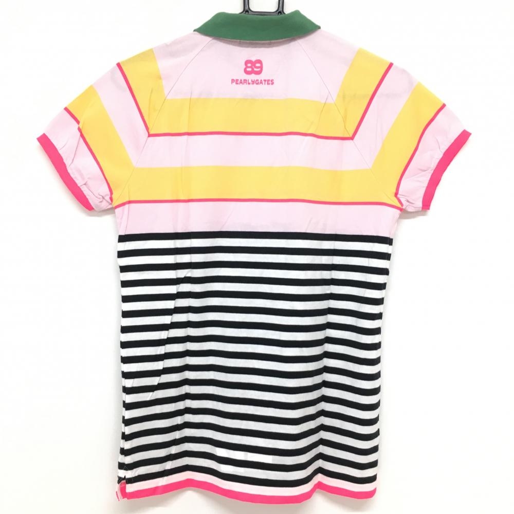 【美品】パーリーゲイツ 半袖ポロシャツ 蛍光ピンク×イエロー ボーダー 黒×白 コットン混 レディース 1(M) ゴルフウェア PEARLY GATES