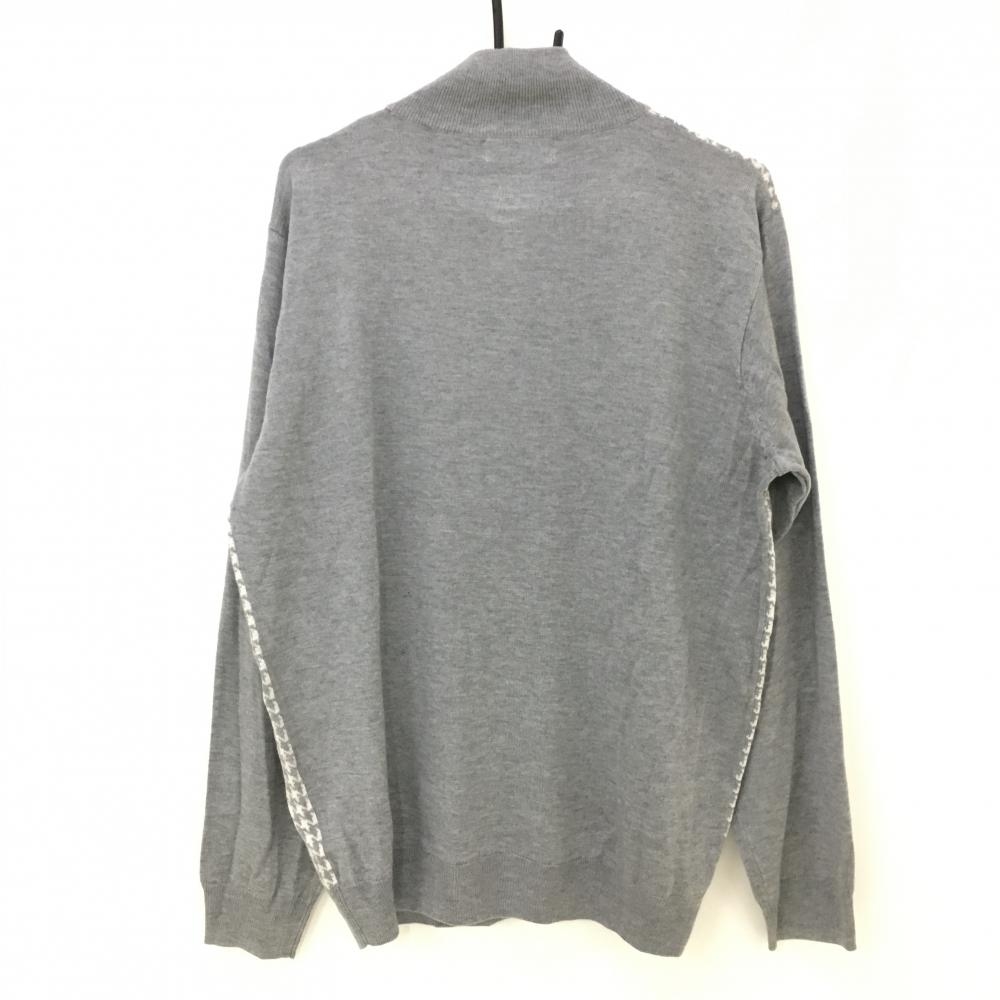 【超美品】ツアーステージ ハイネックセーター グレー×白 前面千鳥格子 ニット ハーフジップ ウール混 メンズ LL ゴルフウェア TOURSTAGE