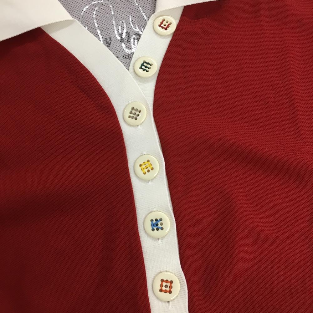 【超美品】ミエコウエサコ 半袖スキッパーシャツ レッド×白 ノイジーノイジー レディース 40 ゴルフウェア M・U SPORTS