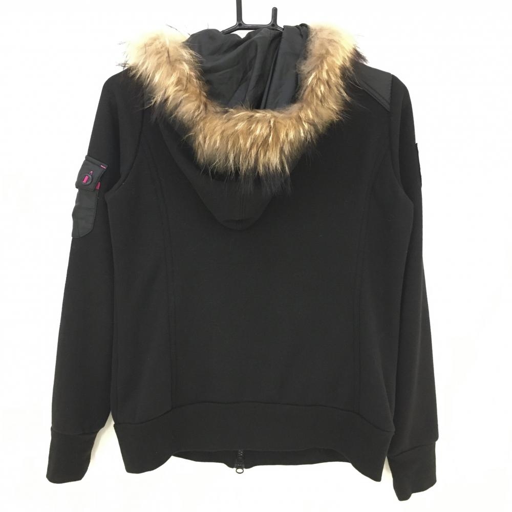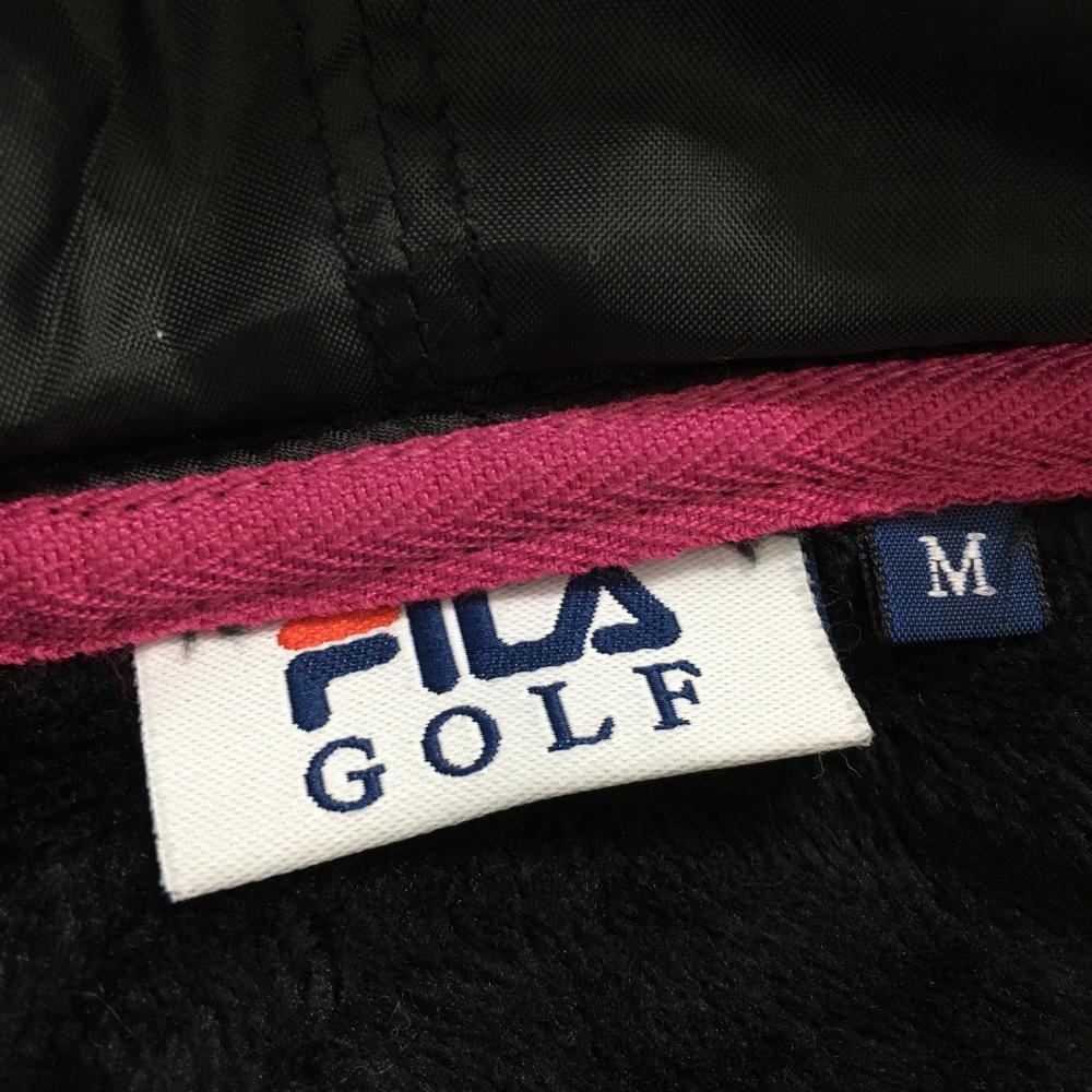 フィラゴルフ フード付きブルゾンジャケット 黒×ピンク 胸元ロゴ ファー着脱可 裏起毛 異素材切替 レディース M ゴルフウェア FILA GOLF