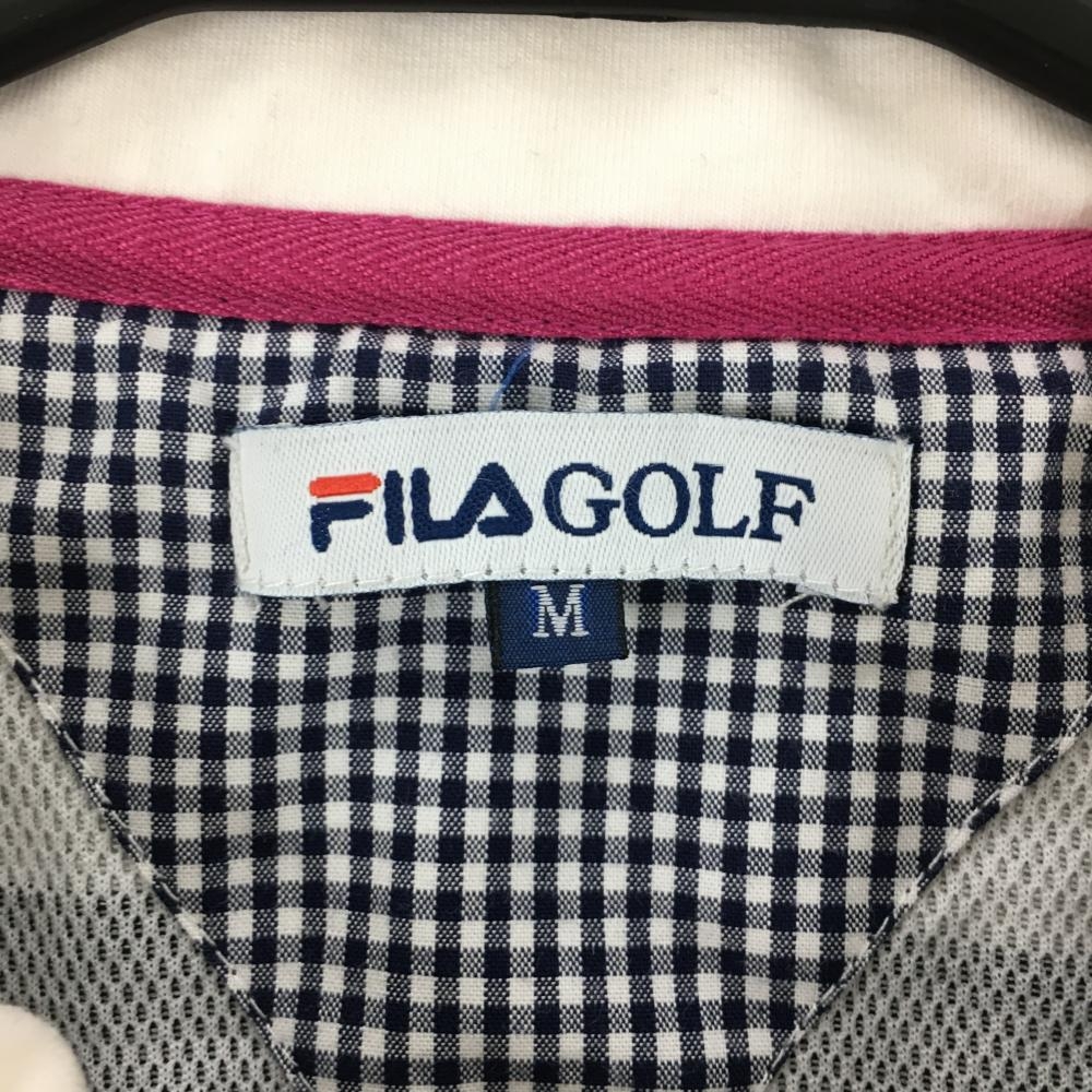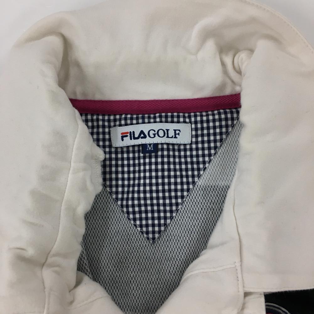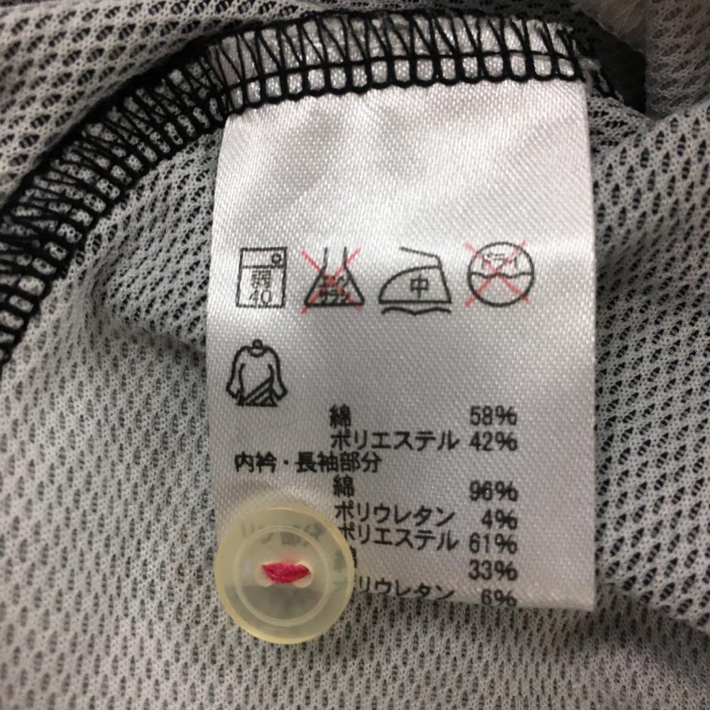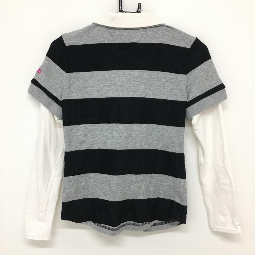 フィラゴルフ 長袖ポロシャツ グレー×黒 ボーダー柄 ハートワッペン 二重襟 重ね着風 レディース M ゴルフウェア FILA GOLF