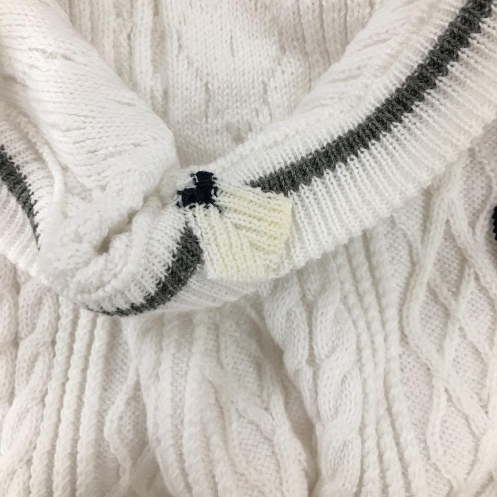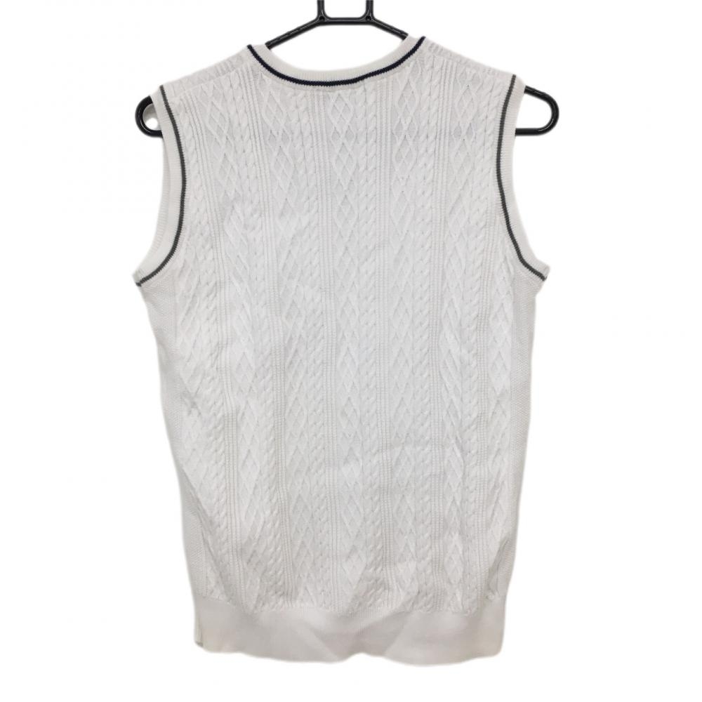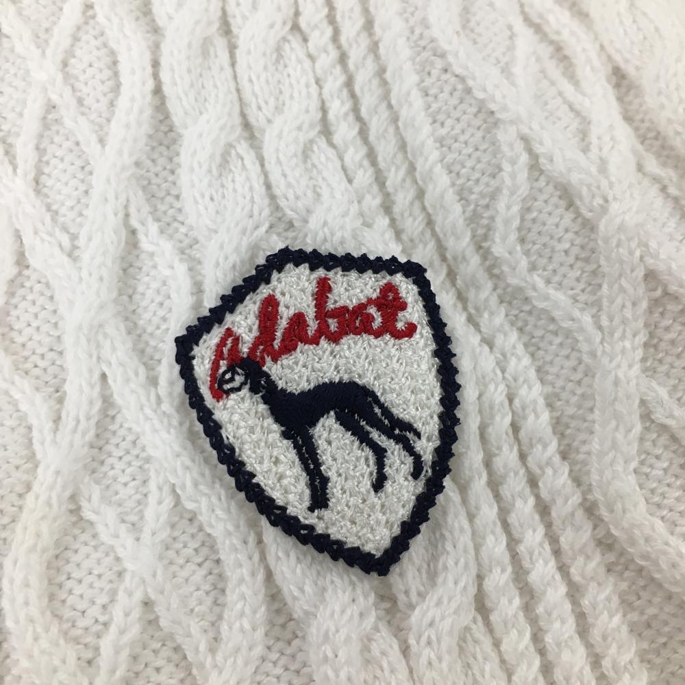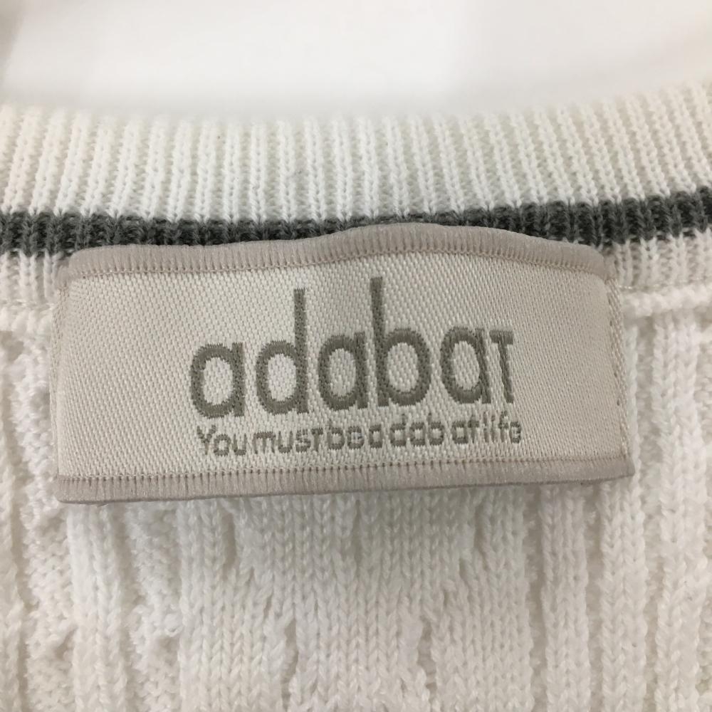 アダバット ニットベスト 白×黒 ケーブル編み 胸元ロゴ Vネック メンズ 44 ゴルフウェア adabat