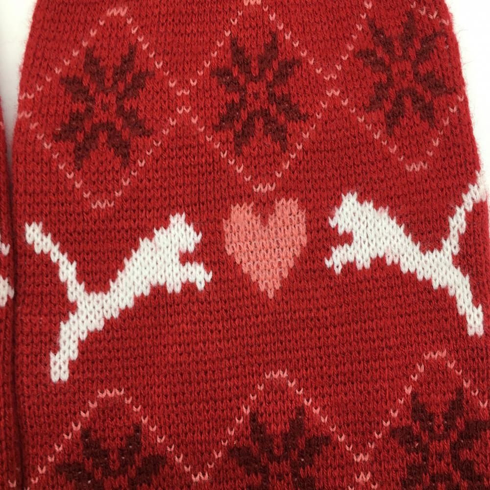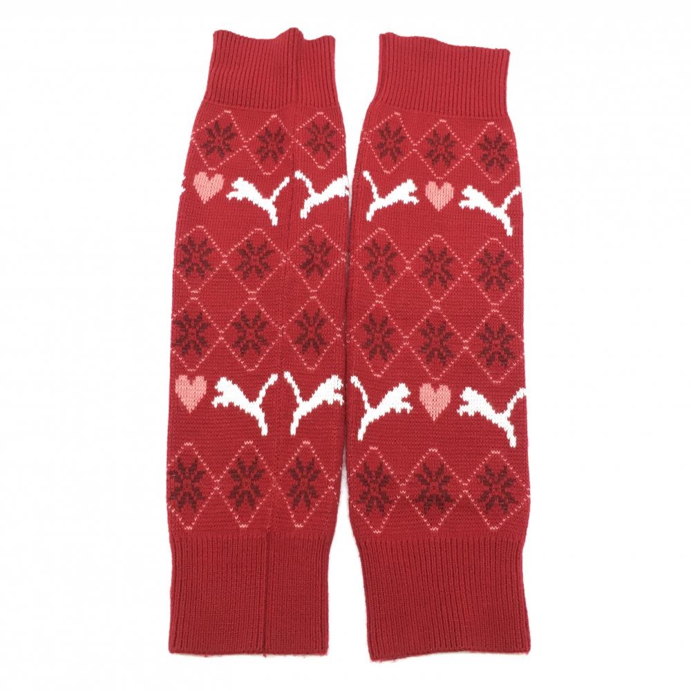 【超美品】プーマ ニットレッグウォーマー レッド×白 ハート レディース ゴルフウェア PUMA