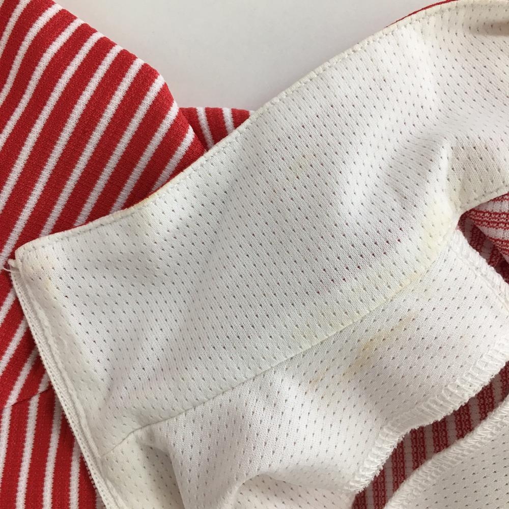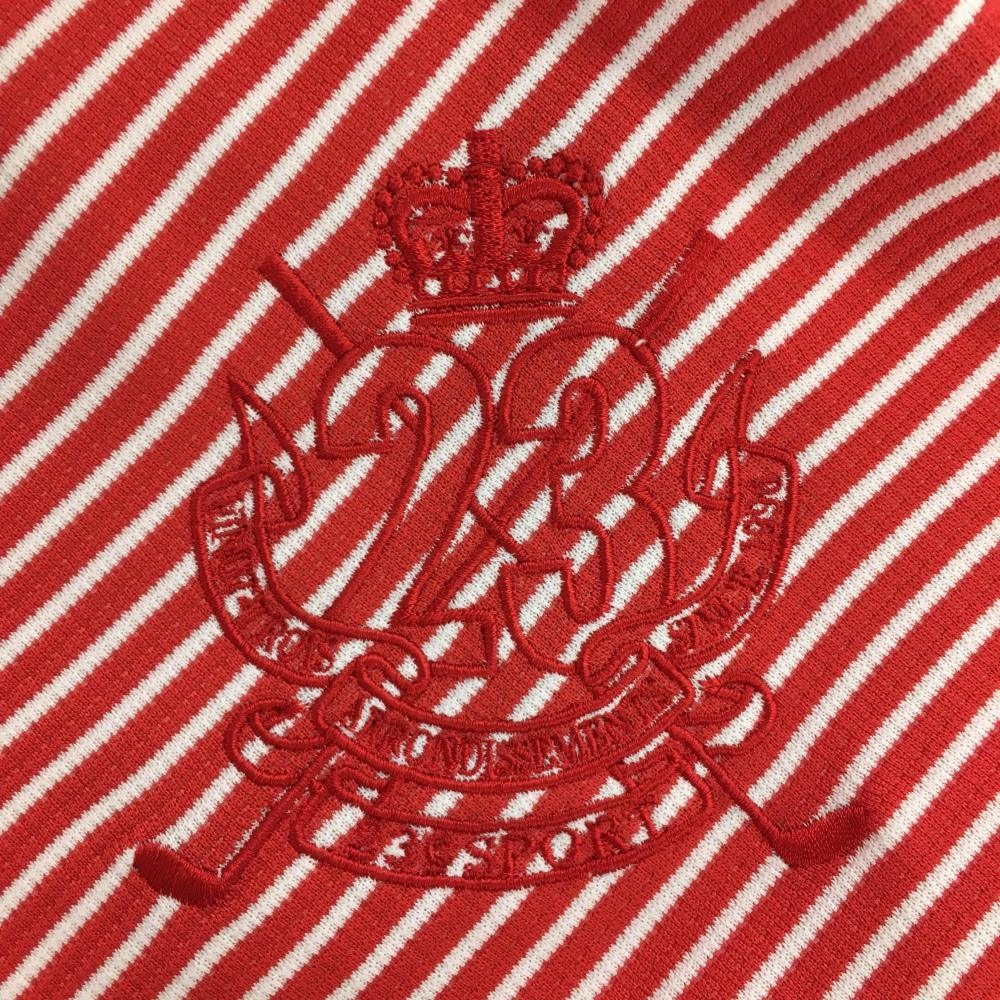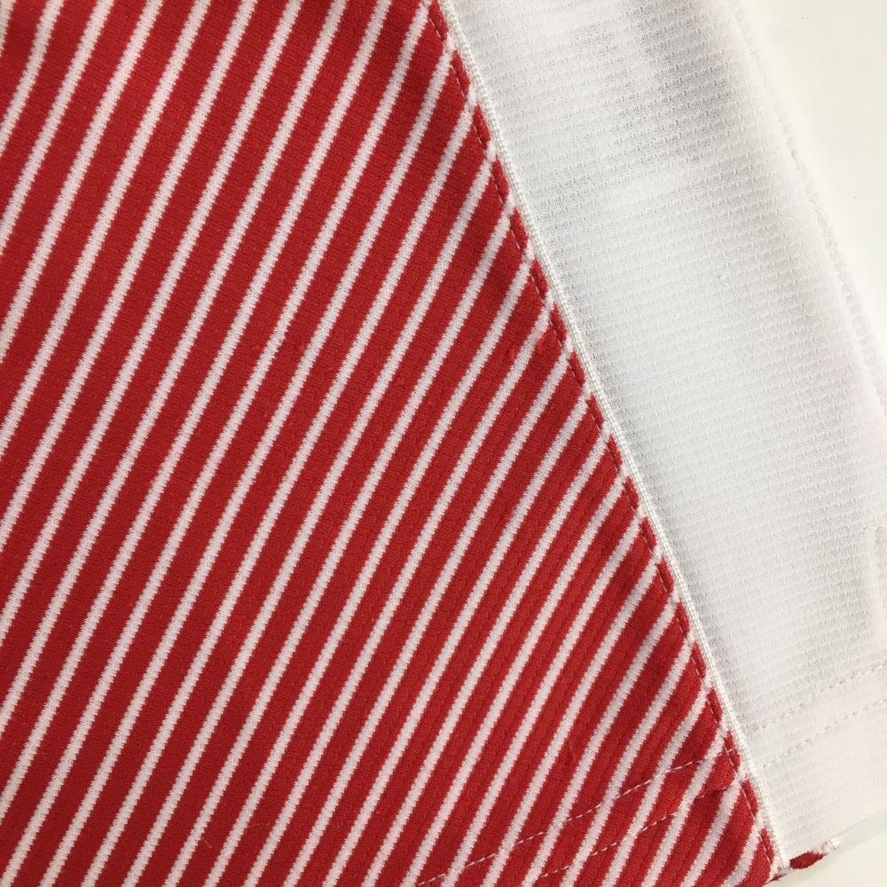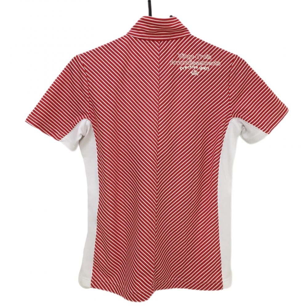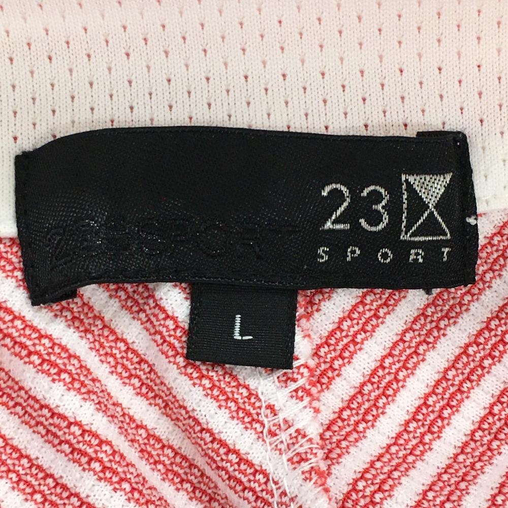 23区スポーツ 半袖ハイネックシャツ レッド×白 斜めストライプ ロゴ刺しゅう レディース L ゴルフウェア 23区