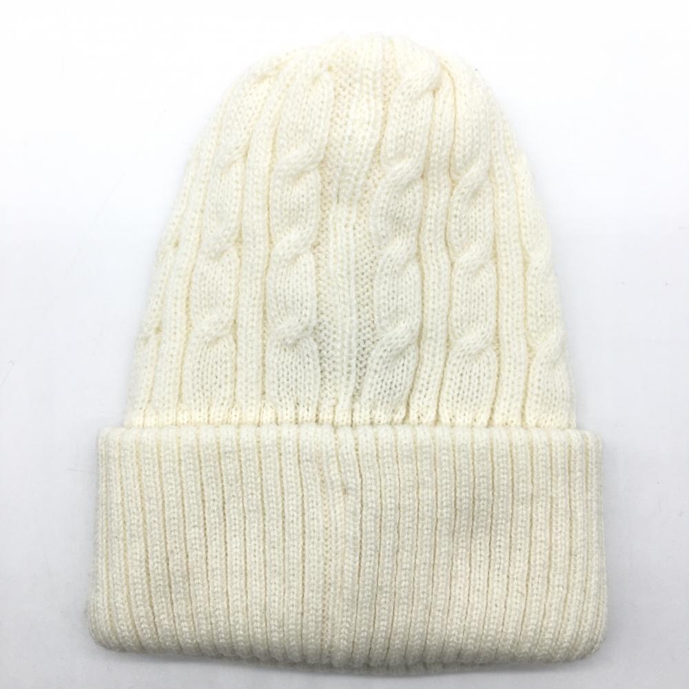 【超美品】マンシングウェア ニット帽 アイボリー ケーブル編み アクリル100% FREE ゴルフウェア Munsingwear