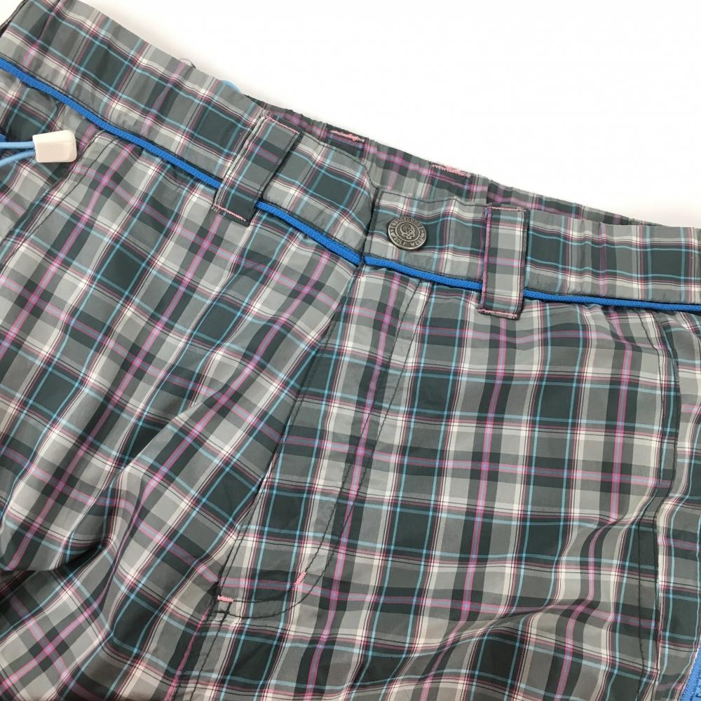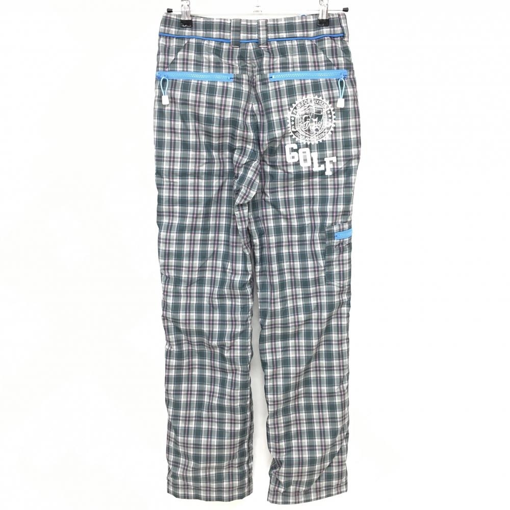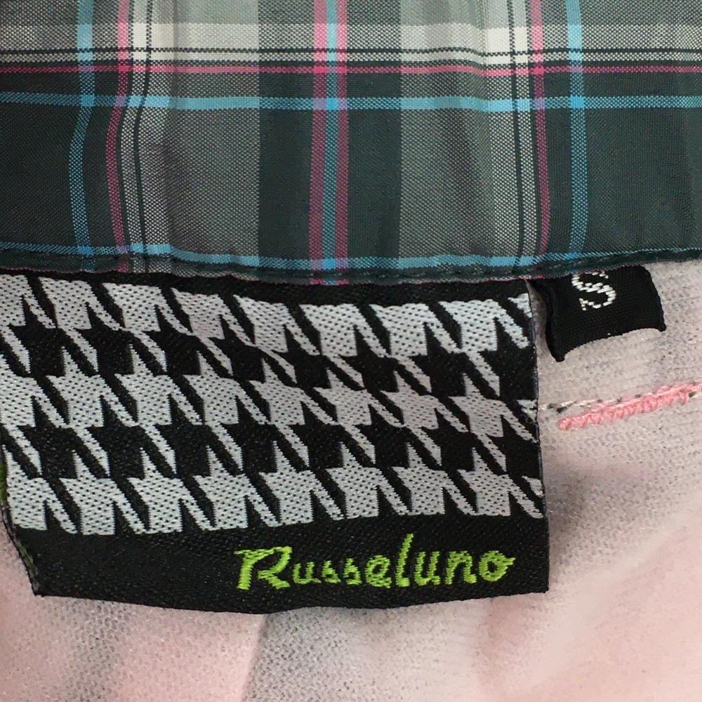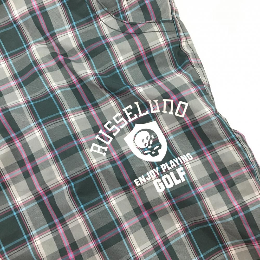 【美品】ラッセルノ パンツ グレー チェック 裏起毛 ウエストゴム メンズ S ゴルフウェア RUSSELUNO