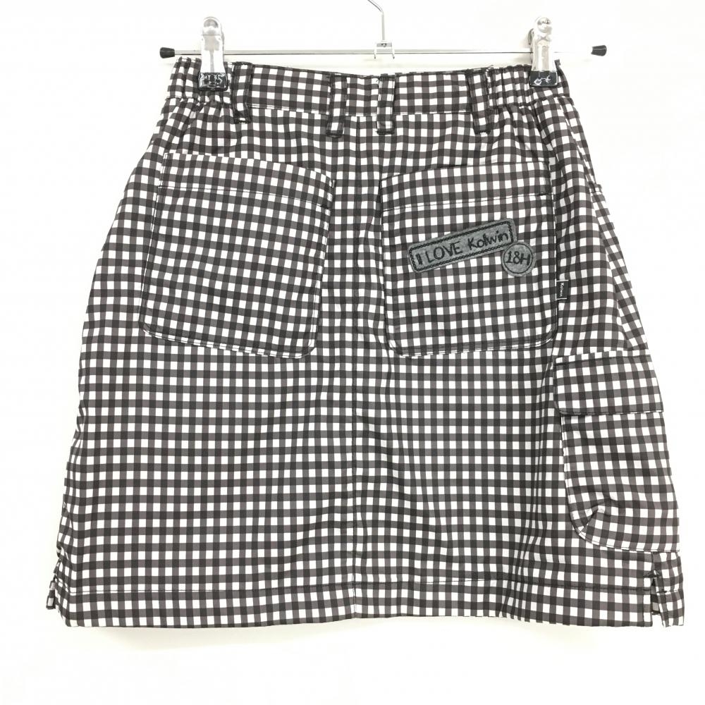 【超美品】コルウィン スカート 黒×白 ギンガムチェック柄 総柄 5ポケット 裏地付き レディース S ゴルフウェア Kolwin